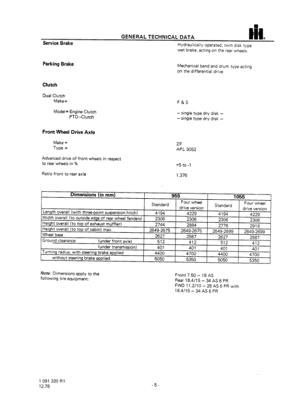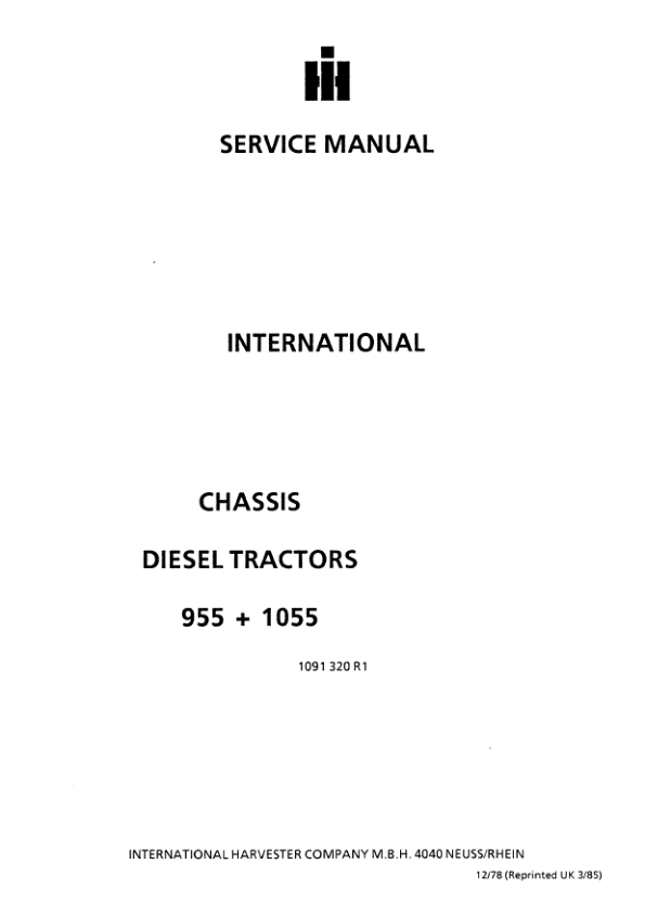 CASE IH 955 1055 Diesel Tractors Service Manual
