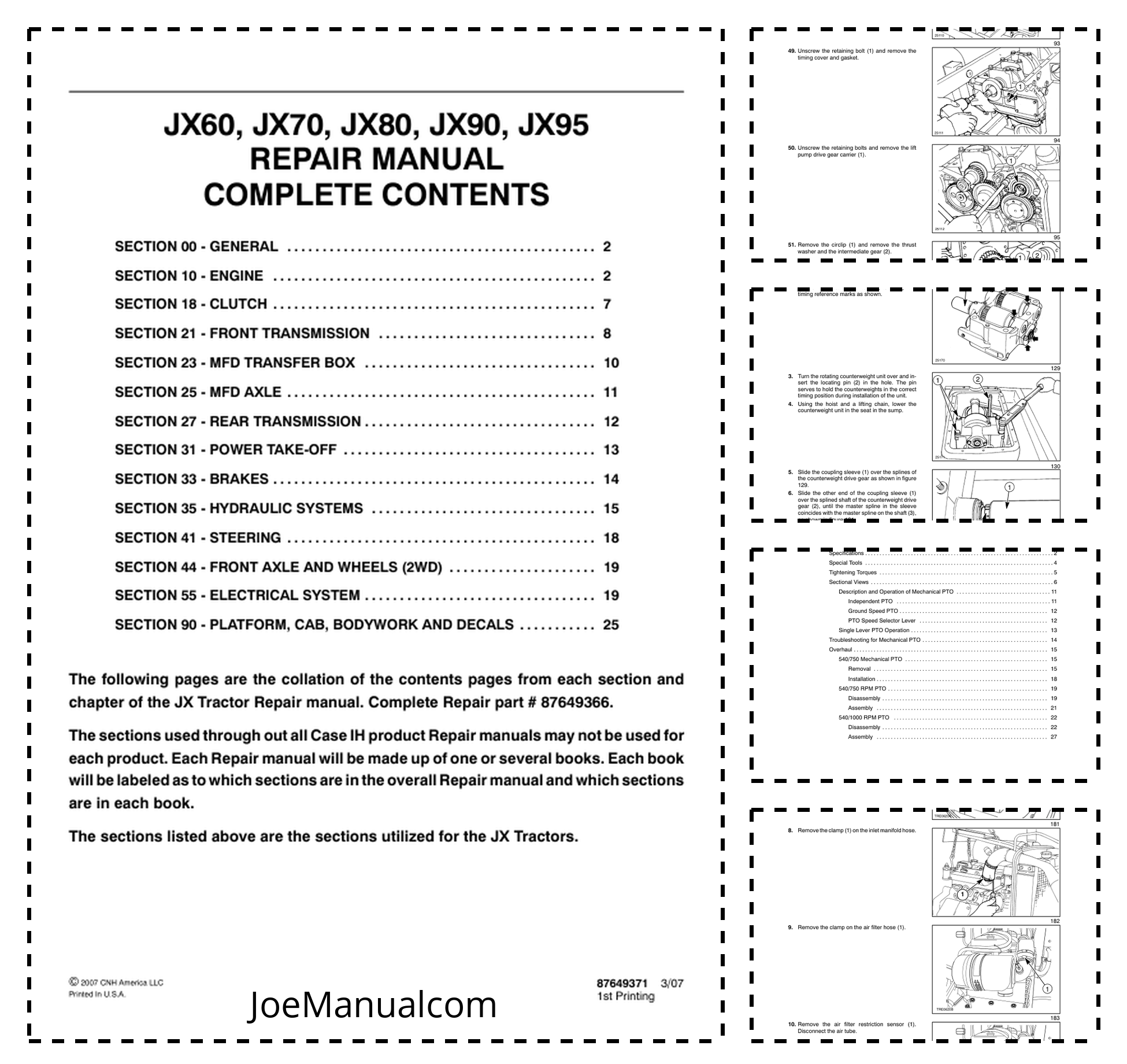 CASE IH JX60 JX70 JX80 JX90 JX95 Tractor Service Manual 87649371