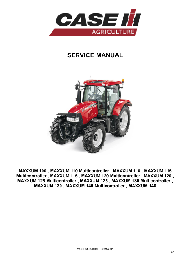 CASE IH Maxxum 100 110 115 120 125 130 140 Tractor Tier 3 Service Manual