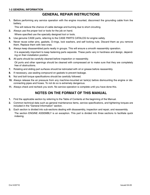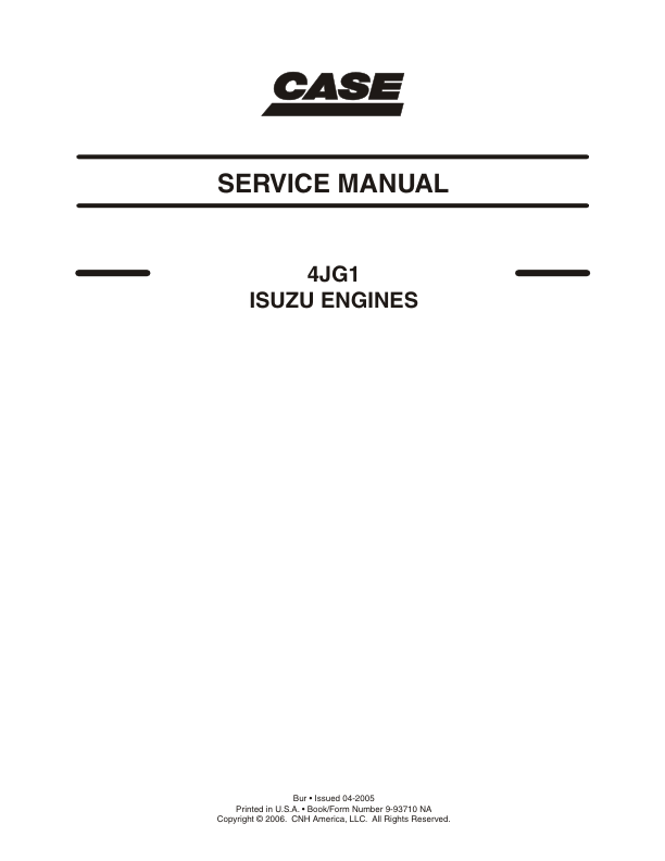 CASE Isuzu 4JG1 Engine Service Manual