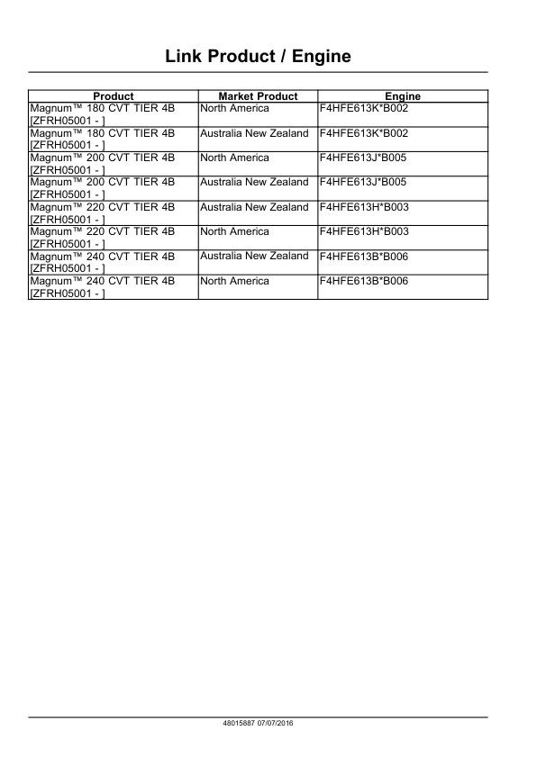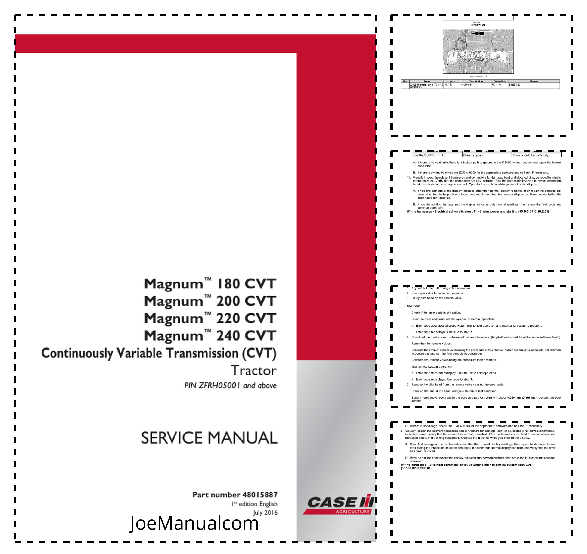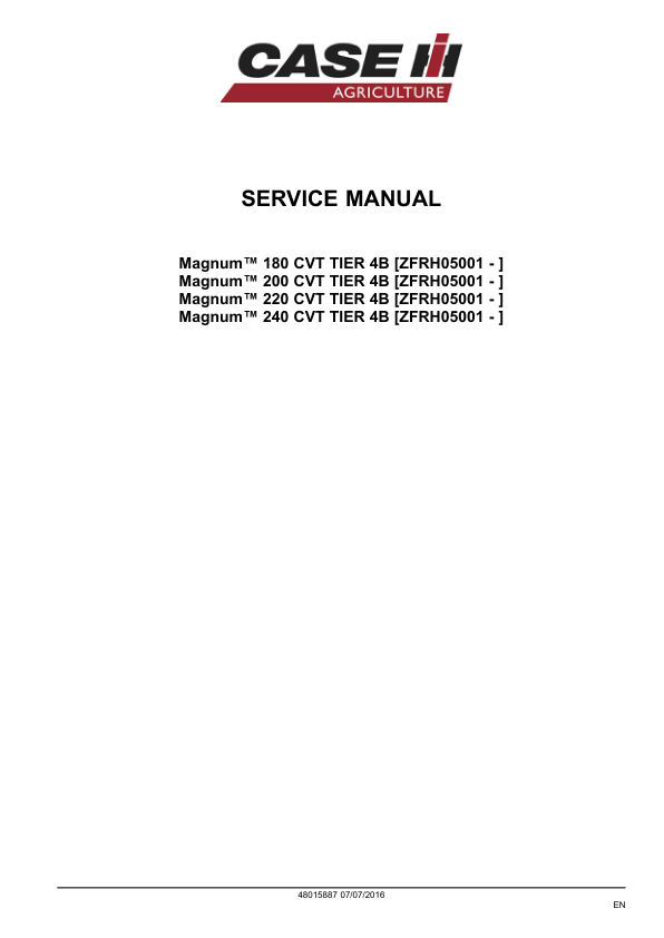 CASE Magnum 180 190 210 240 Tractors with CVT Service Manual ZERH05001 and Above NA AU NZ