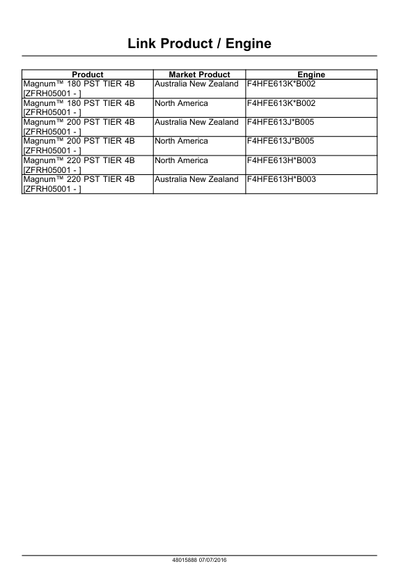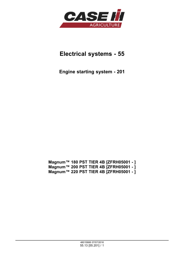 CASE Magnum 180 190 210 Tractors with PST Service Manual from ZARH05001 and Above NA AU NZ