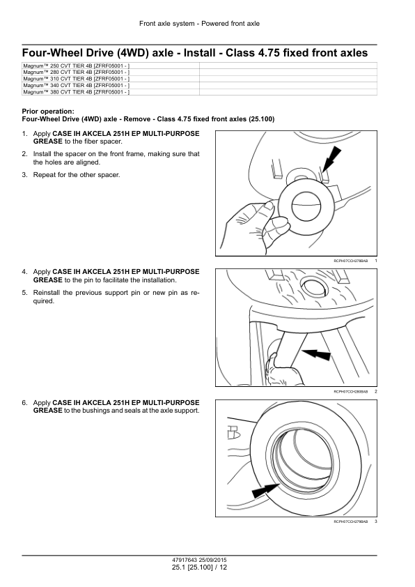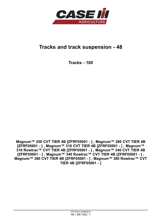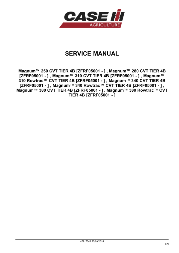 CASE Magnum 250 280 310 340 380 Rowtrack Tractors with CVT Service Manual ZERF05001 and Above NA