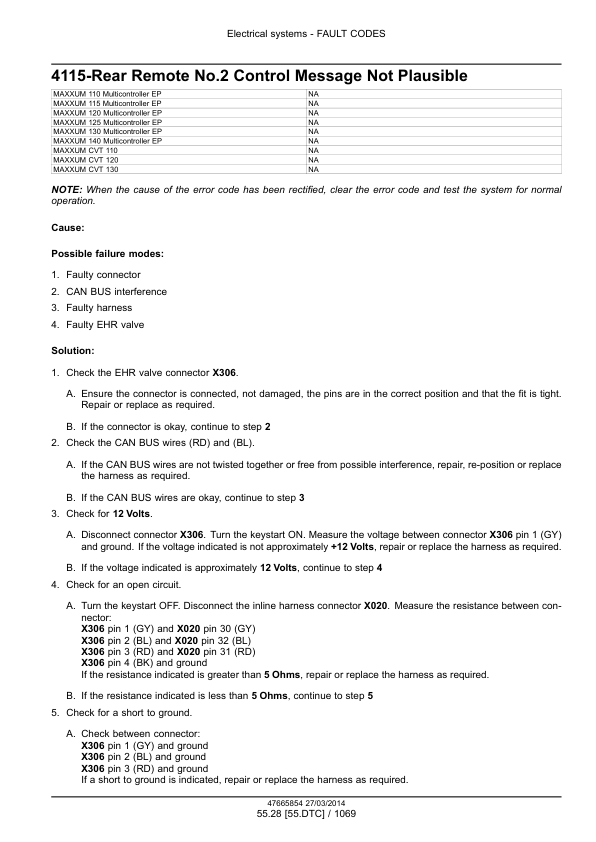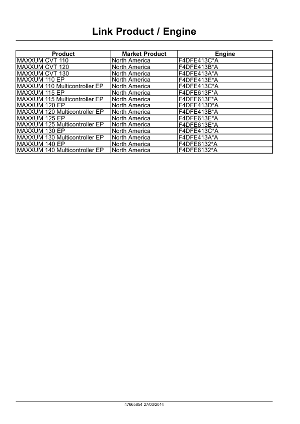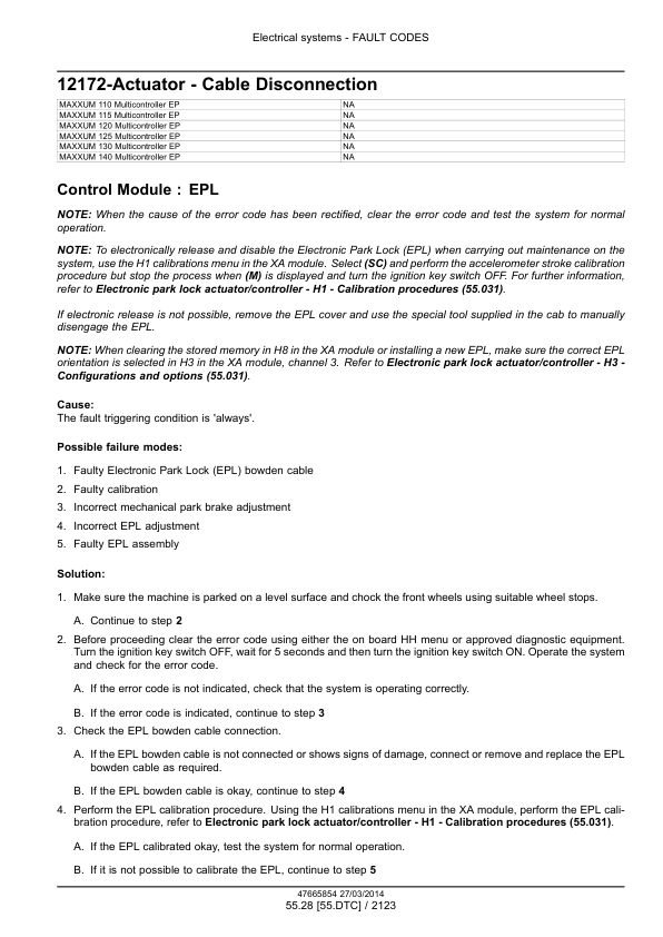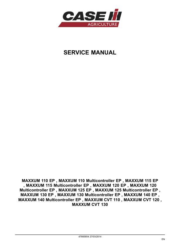 CASE Maxxum 110 115 120 125 130 140 EP Multicontroller CVT Tier 4A Tractor Service Manual
