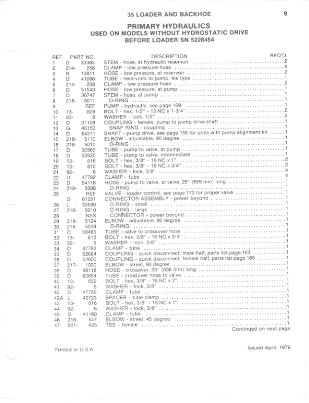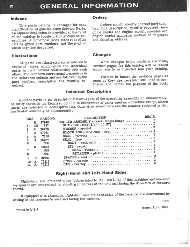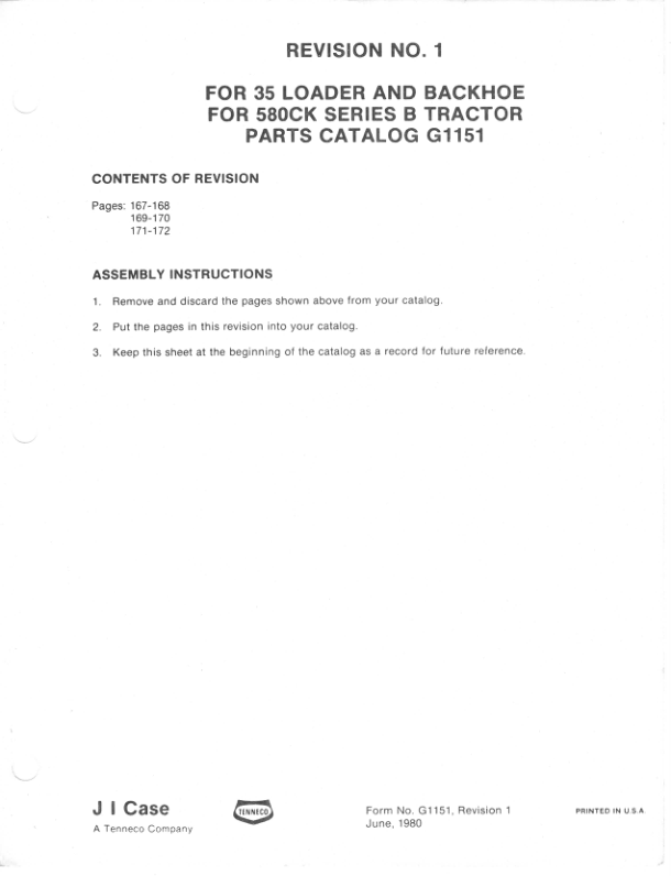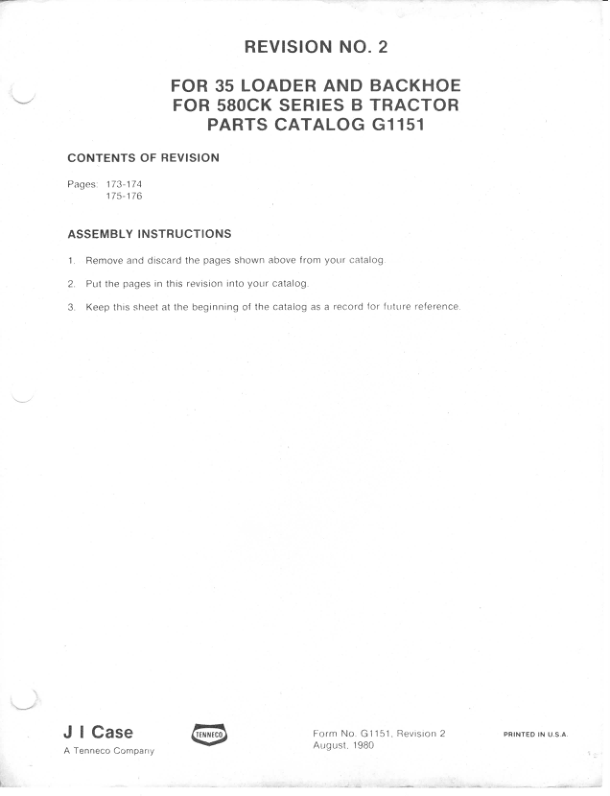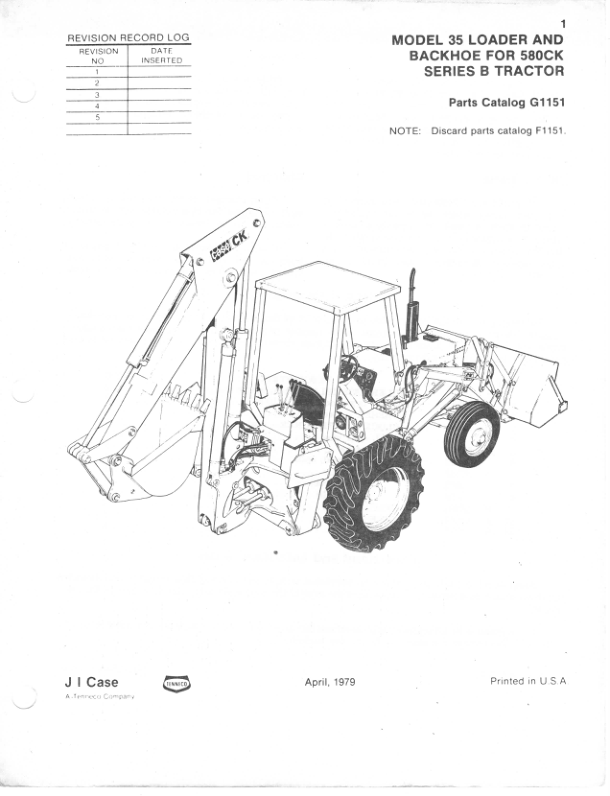 CASE Model 35 Backhoe Loader Series B Parts Catalog G1151 Printed Book