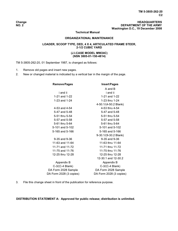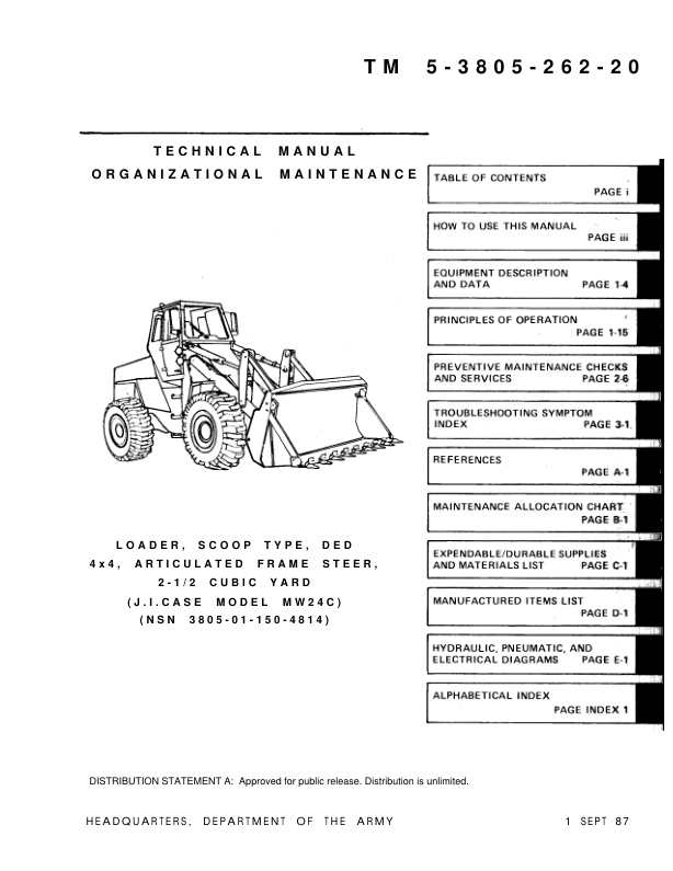 CASE MW24C Army Loader Technical Service Manual TM 5-3805-262-20