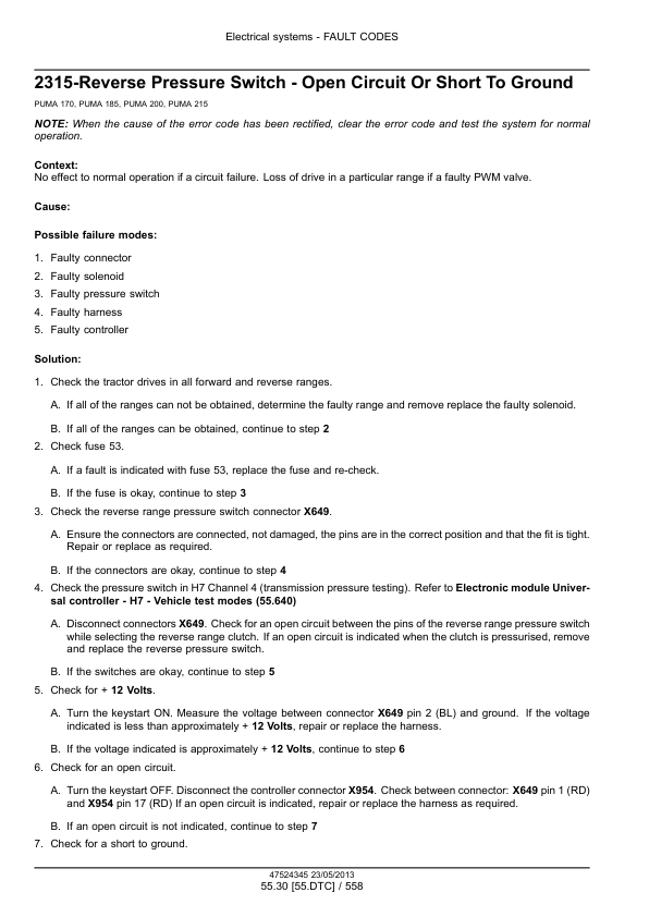 CASE Puma 170 185 200 215 CVT Tractor Service Manual NA