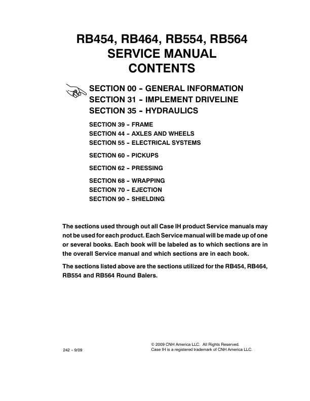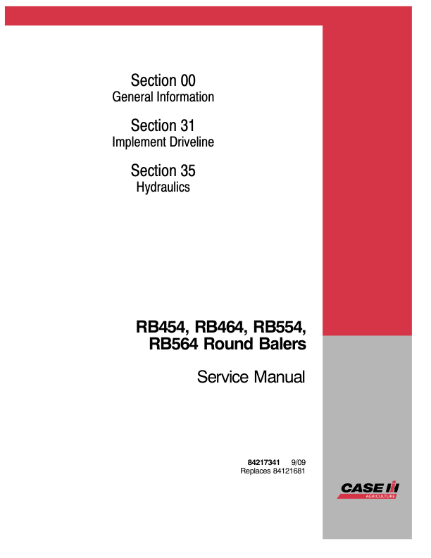 The CASE RB454 RB464 RB554 RB564 Round Baller Service Manual is a comprehensive guide designed for maintenance and repair of the specified round balers. This detailed manual provides essential technical information, troubleshooting tips, and step-by-step instructions to ensure the optimal performance and longevity of your CASE round baler. Whether you’re a professional technician or a farmer performing routine maintenance, this manual is an invaluable resource for keeping your equipment in top condition. It covers everything from routine inspections to complex repairs, making it an essential tool for anyone operating or servicing these models.