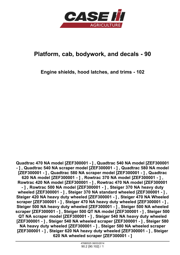 CASE Rowtrac Steiger Quadtrac Tier 4B Tractor Service Manual ZEF300001 and Above NA