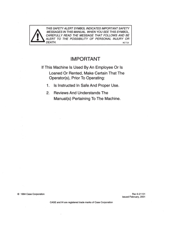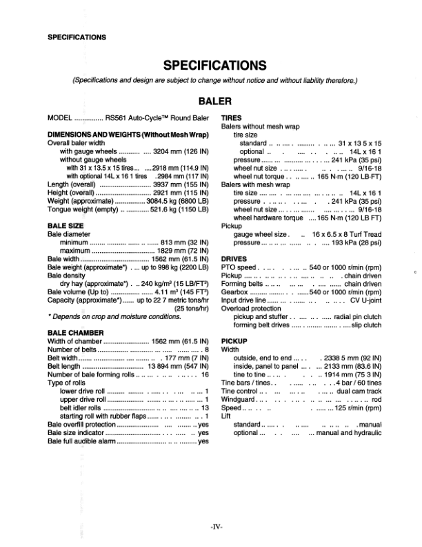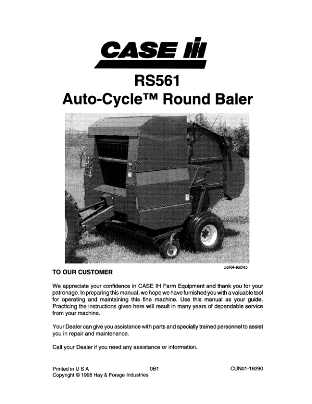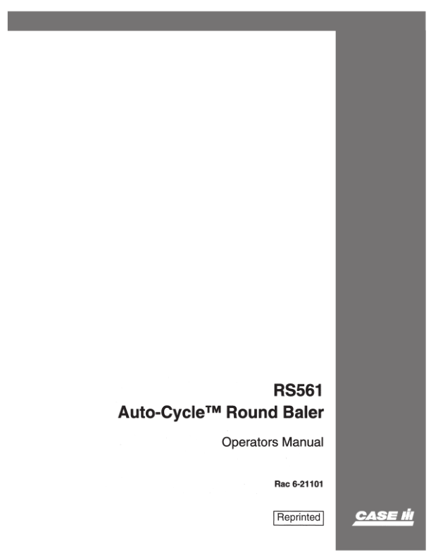CASE RS561 Auto-Cycle Round Baler Operators Manual 6-21101