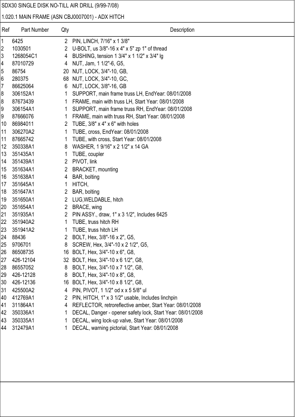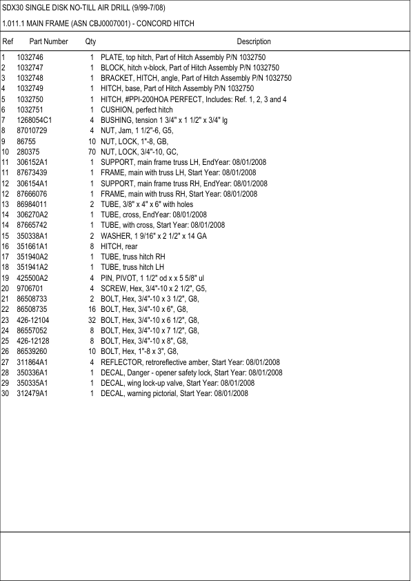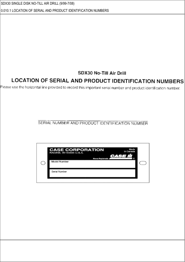 CASE SDX30 Sigle Disk BO-TILL Air Drill Parts Catalog