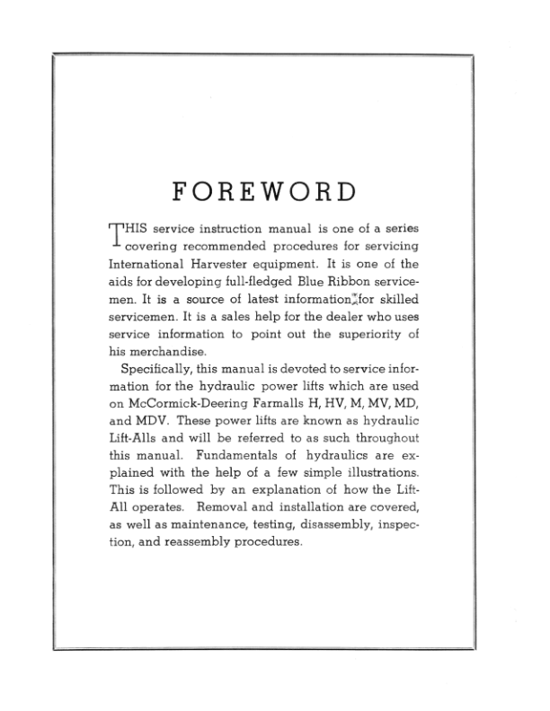 CASE Servicemans Guide Hydraulic Lift-all-IH CHS68G Service Manual