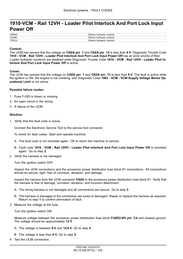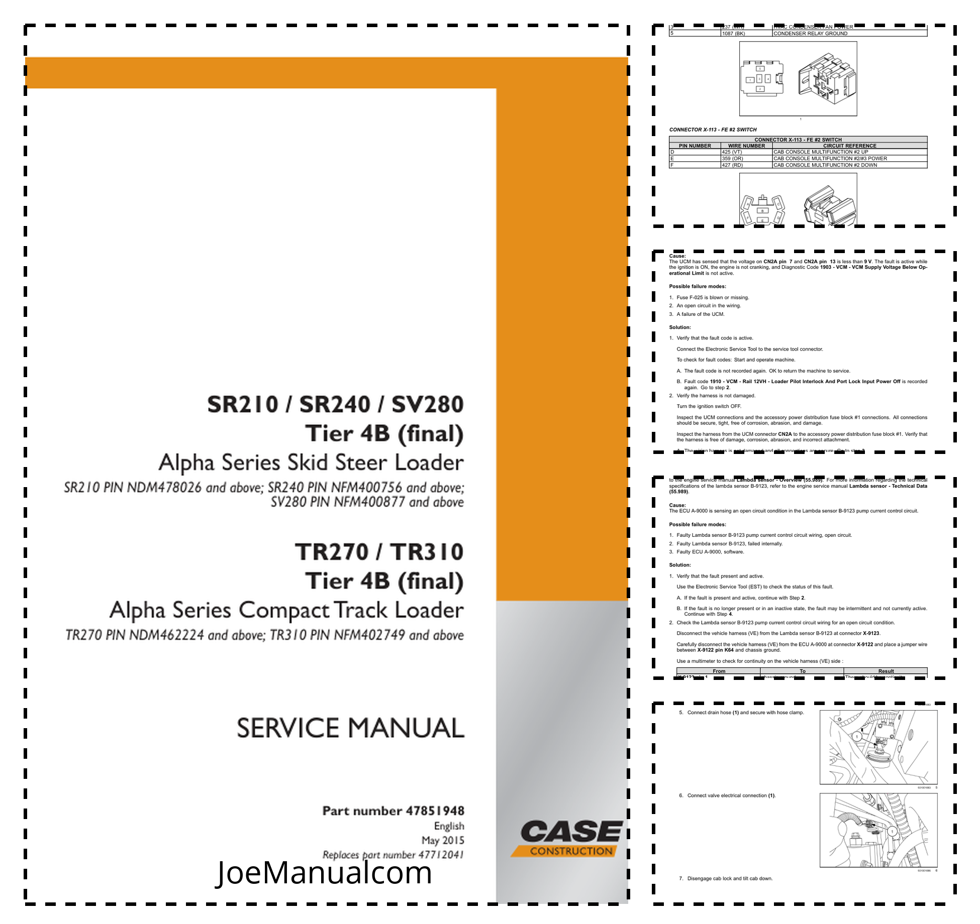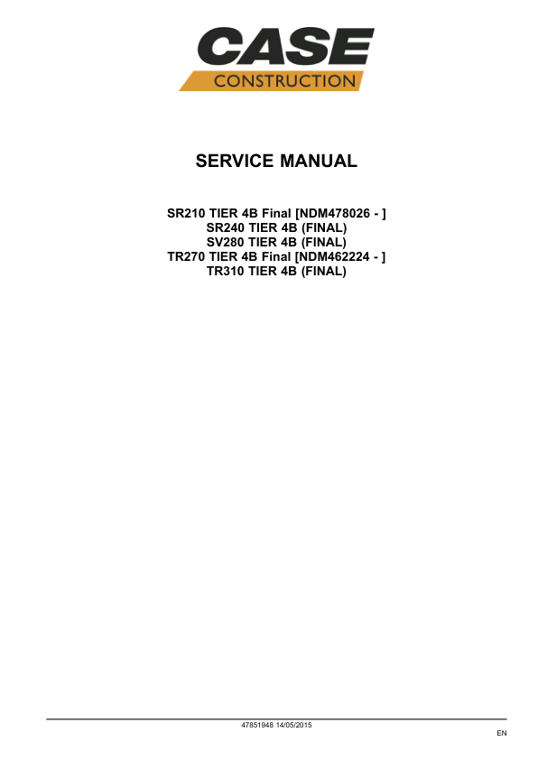 CASE SR210 SR240 SV280 TR270 TR310 Skid Steer Loader Service Manual PIN NDM NFM