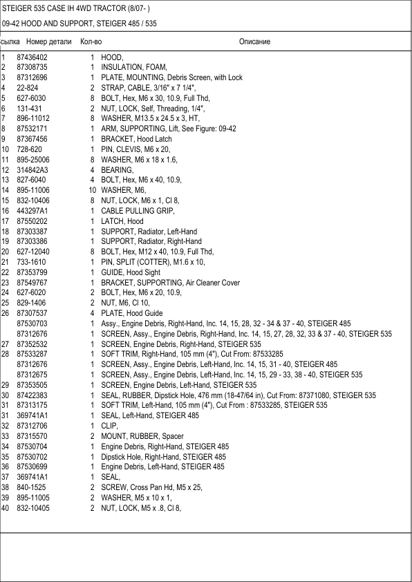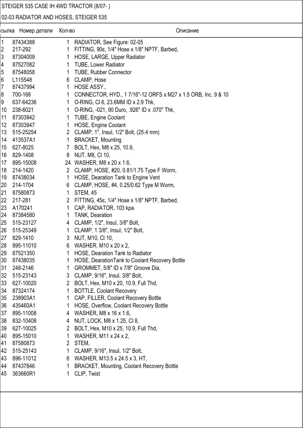 CASE Steiger 535 4WD Tractor Parts Catalog