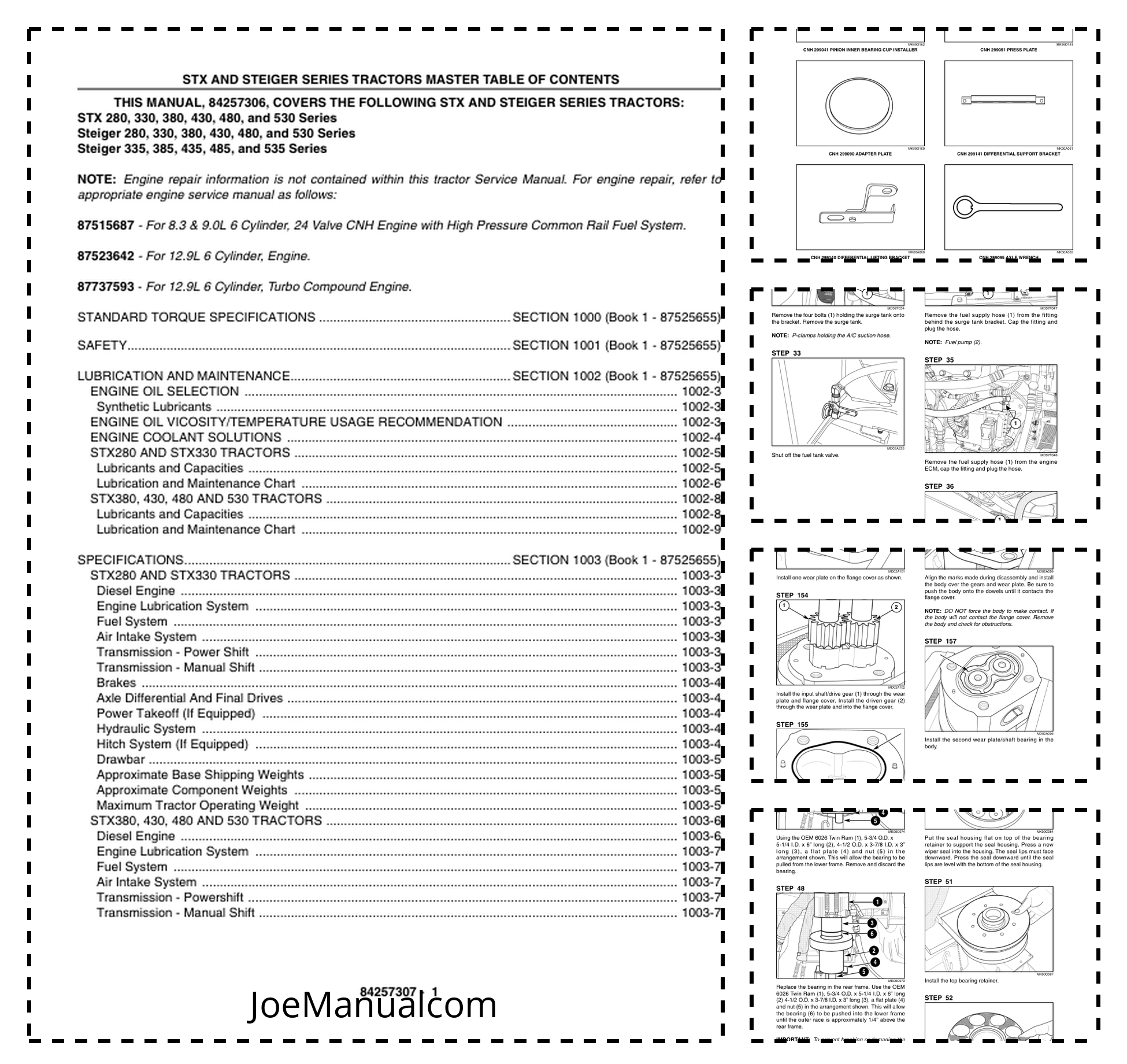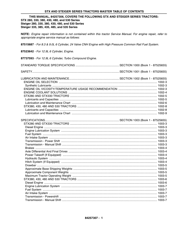 CASE STX 280 380 430 460 530 Steiger 280-535 Series Tractors Service Manual. The CASE STX 280 380 430 460 530 Steiger 280-535 Series Tractors Service Manual is a comprehensive guide designed for the maintenance and repair of these high-performance agricultural tractors. This manual provides detailed step-by-step instructions, illustrations, and diagrams to assist mechanics, farmers, and equipment owners in performing tasks ranging from routine maintenance to complex repairs. Covering all major systems, including the engine, transmission, electrical components, and hydraulic systems, this manual ensures that users have the necessary information to keep their tractors operating at peak efficiency. Whether you are a professional technician or a DIY enthusiast, this service manual is an invaluable resource for ensuring the longevity and reliability of your CASE STX Steiger tractors.