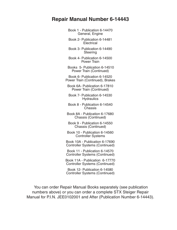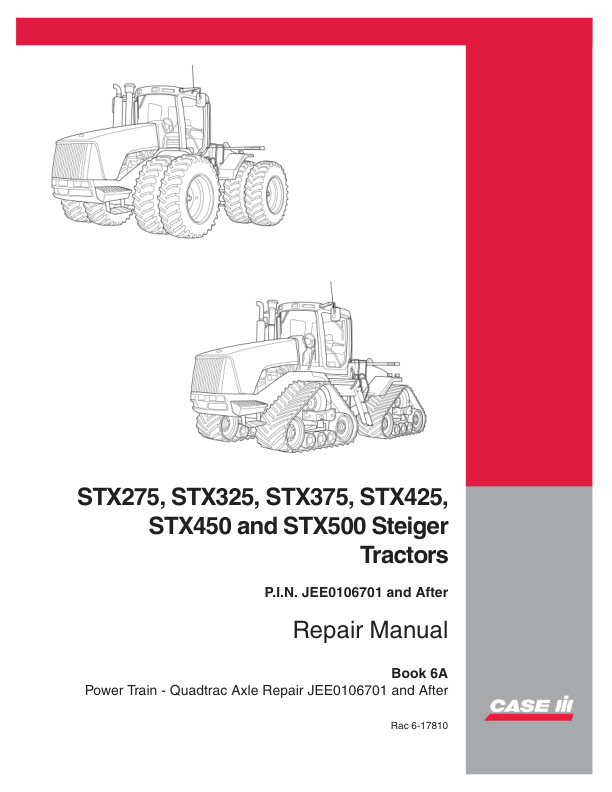 CASE STX275 325 375 425 450 Steiger Tractors Service Manual Book 6A