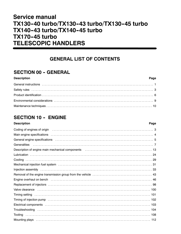 CASE TX130 TX140 TX170 turbo Telehandler Service Manual 87595115A