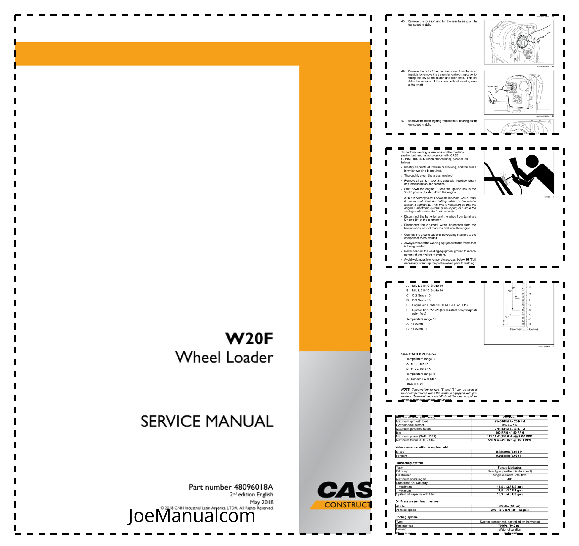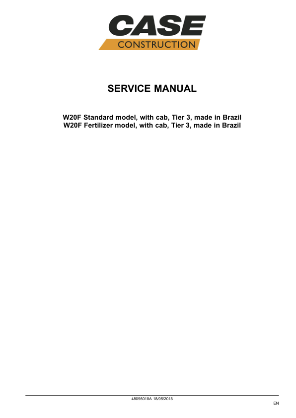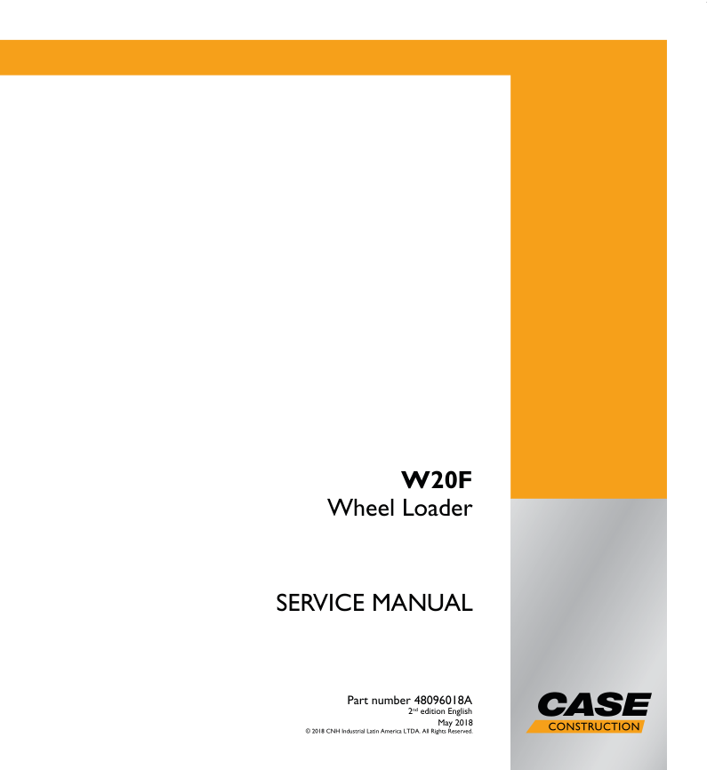 CASE W20F Wheel Loader Service Manual 48096018A made in Brazil