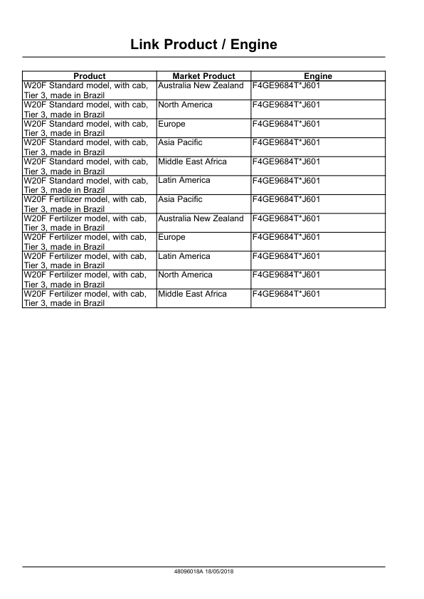 W20F Standard model, with cab, Tier 3, made in Brazil