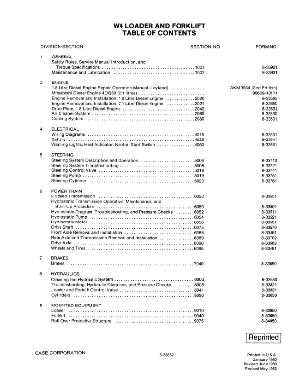 CASE W4 Loader and Forklift Service Manual is a comprehensive guide for maintaining and servicing the CASE W4 loader and forklift. This manual provides detailed instructions, diagrams, and specifications necessary for proper repair, maintenance, and troubleshooting of the equipment. Designed for mechanics, technicians, and equipment owners, the CASE W4 Loader and Forklift Service Manual ensures that users have the accurate and reliable information needed to keep the machinery in optimal working condition. Whether performing routine maintenance or addressing complex repairs, this manual is an essential resource for anyone working with the CASE W4 loader and forklift.