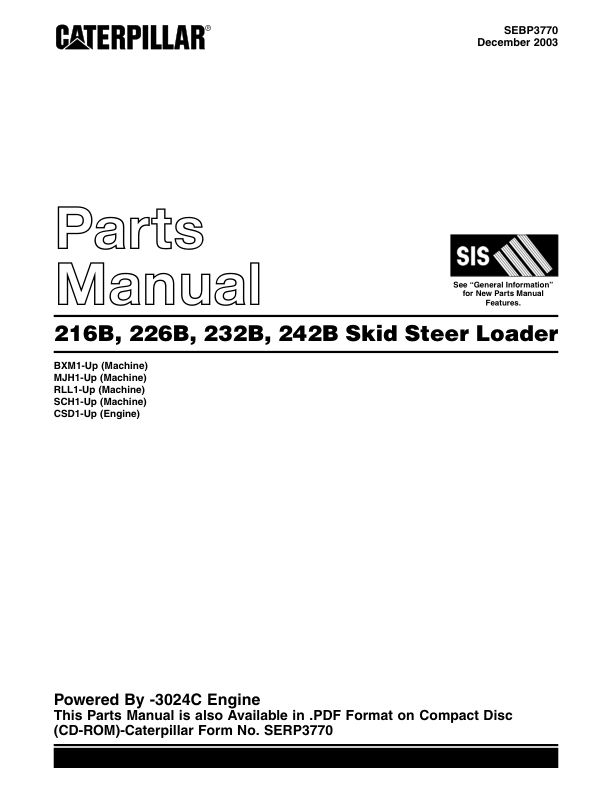 CAT 216B 226B 232B 242B Skid Steer Loader Service Manual BXH1 MJH1 RLL1 SCH1 CSD1