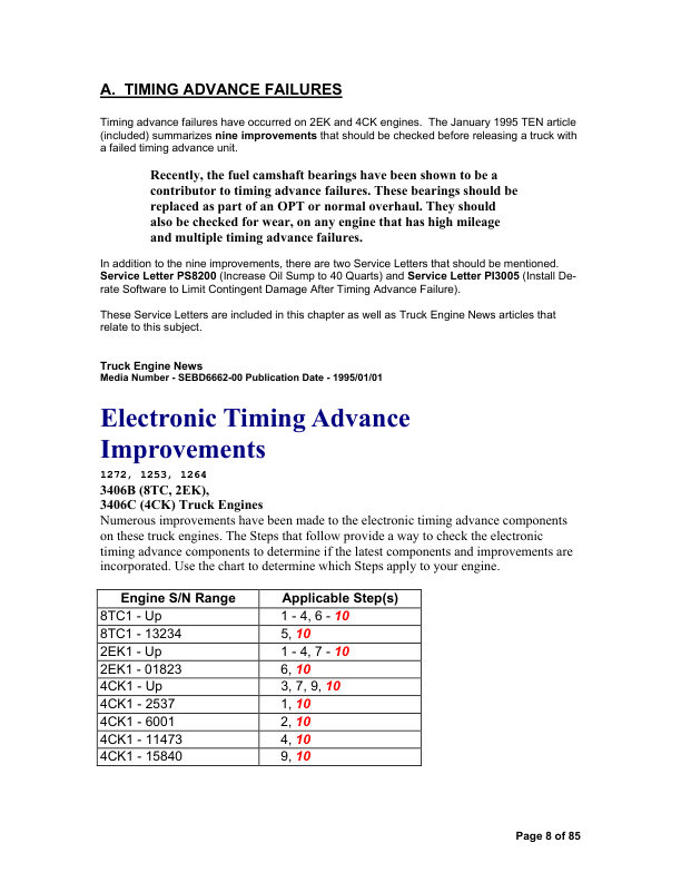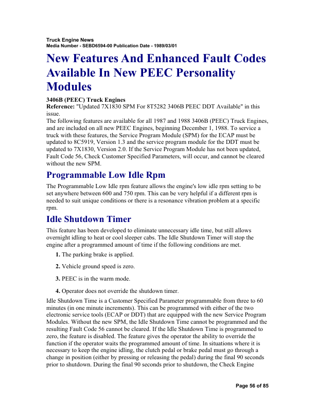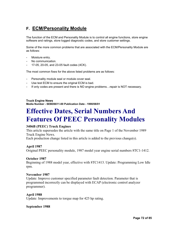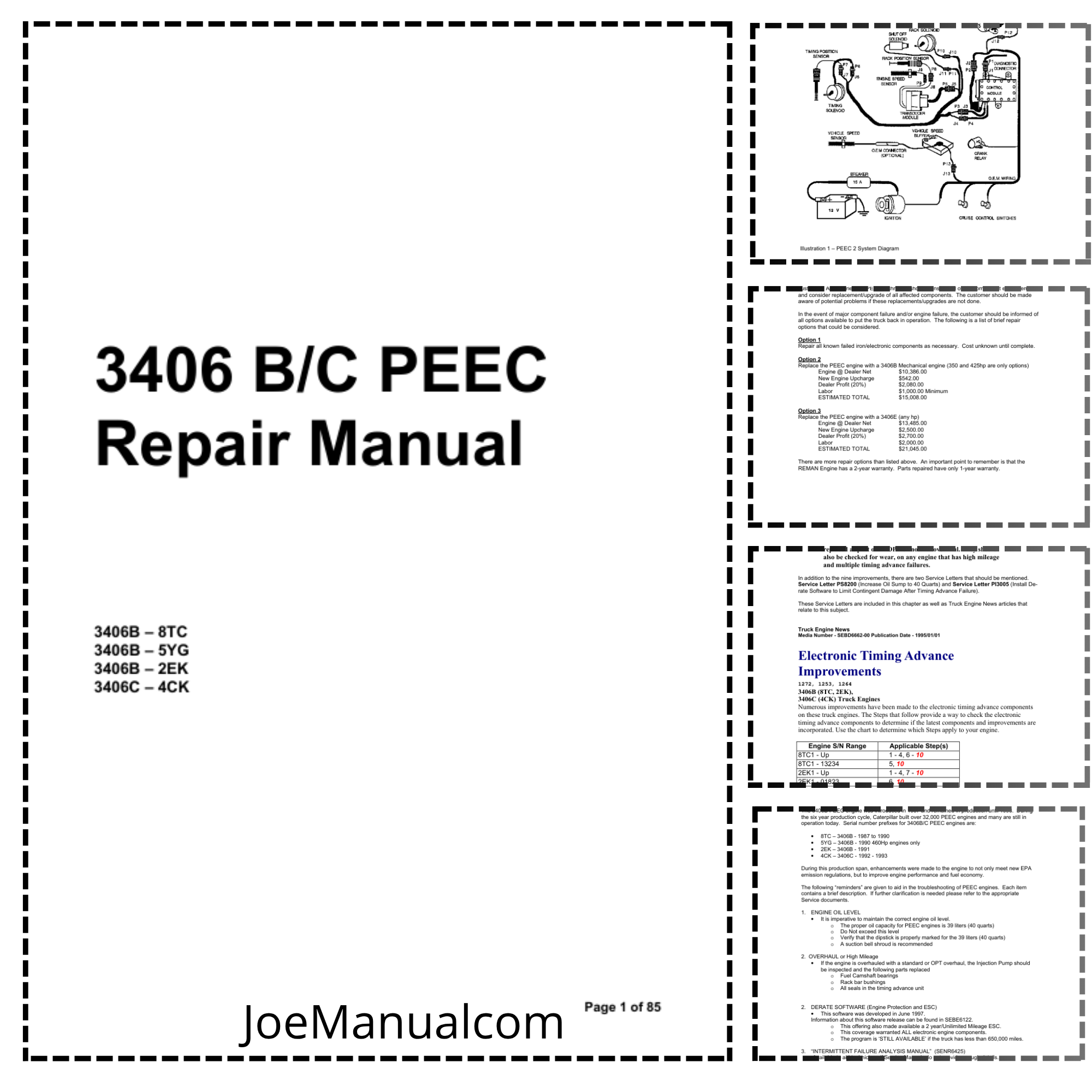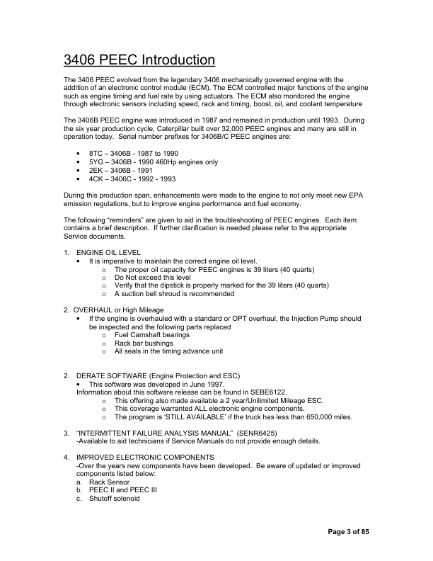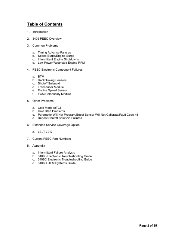 An essential technical guide for the Caterpillar 3406 Series B and C engines equipped with PEEC (Pressure-End Electronic Control) fuel systems. This repair manual offers in-depth procedures for full engine overhaul, including step-by-step disassembly and reassembly of the cylinder head, block, crankshaft, pistons, and valve train. Contains precise torque specifications, tolerance charts, and break-in protocols. Covers diagnostics and repair of the PEEC electronic fuel injection system—detailing sensor layouts, wiring diagrams, timing settings, and fault codes. Includes lubrication system, cooling circuit, and emission control maintenance. Thoroughly illustrated with exploded views, cross‑section diagrams, and component callouts, this manual is invaluable for mechanics servicing heavy-duty trucks, industrial equipment, and power-generation units powered by the 3406 B–C engine platform.