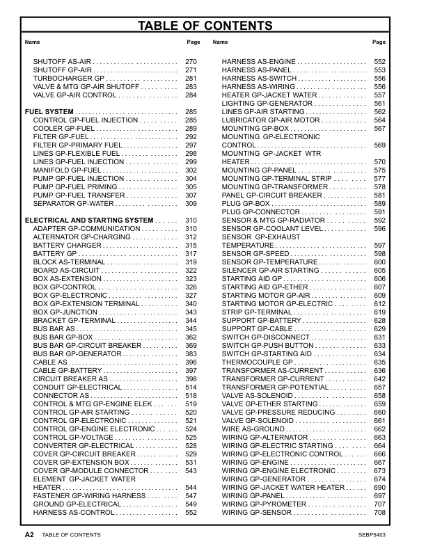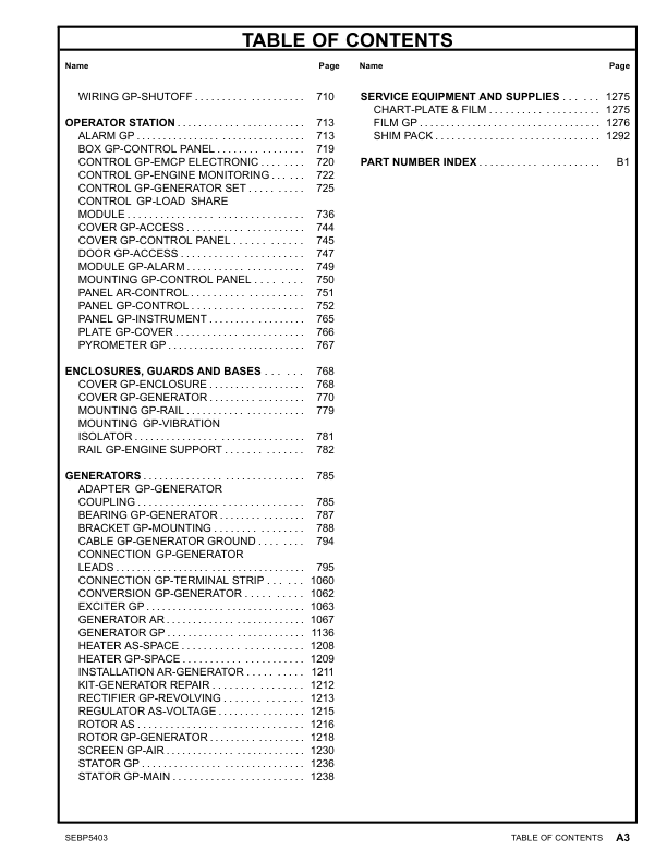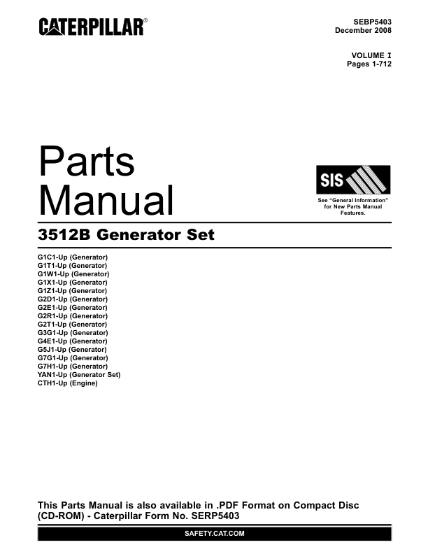 CAT 3512B Generator Set Parts Catalog Volume I SEBP5403