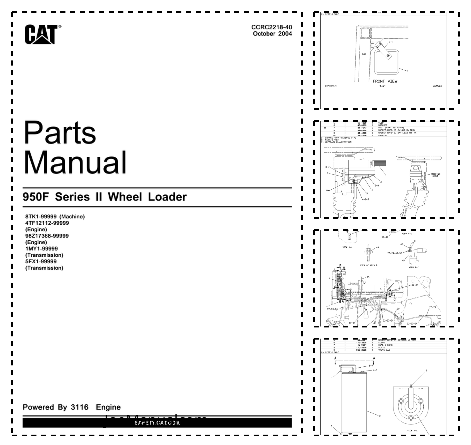 CAT 950F Series II Wheel Loader Parts Manual 8TK1 4TF12112-99999