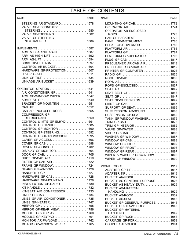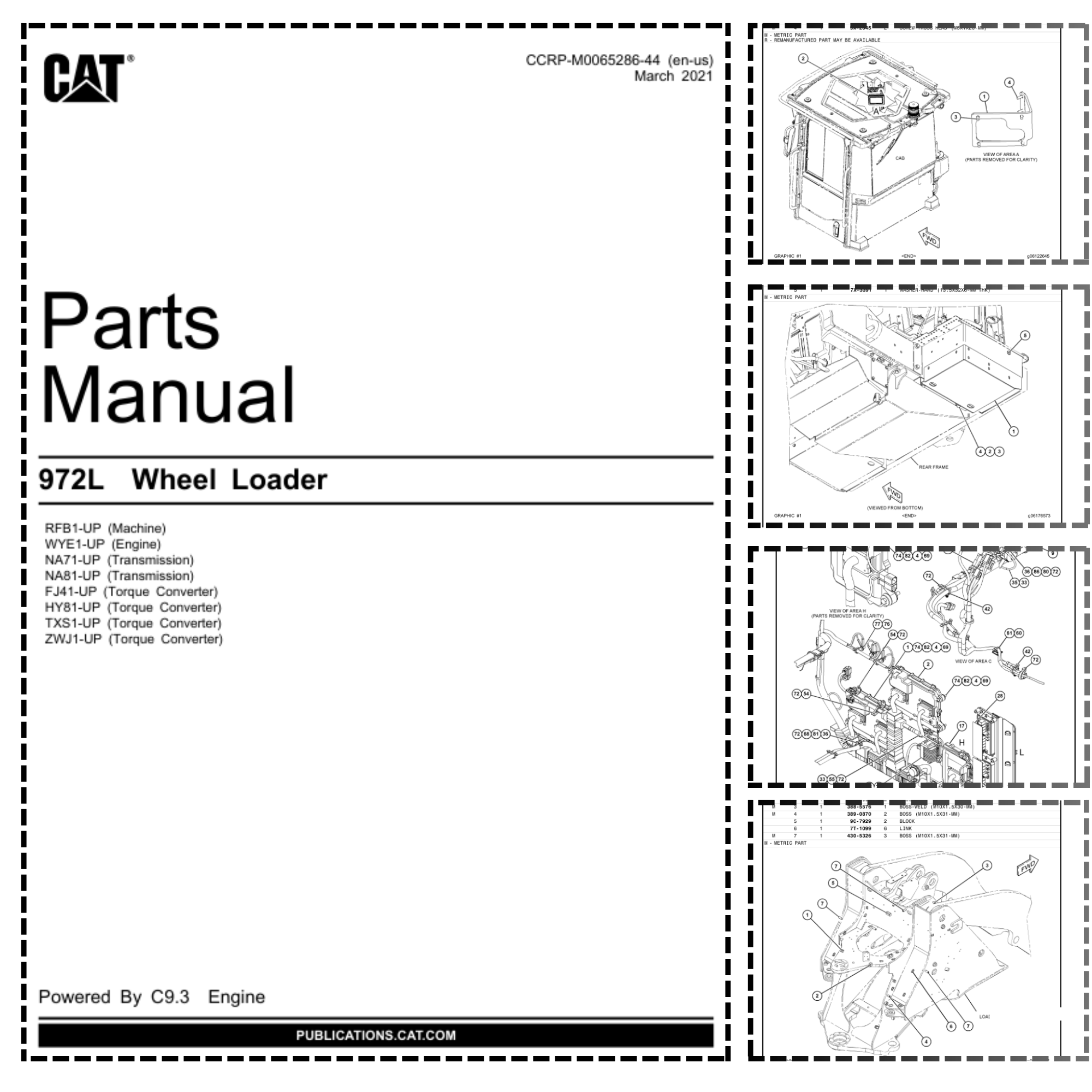 CAT 972L Wheel Loader Parts Manual RFB1-UP