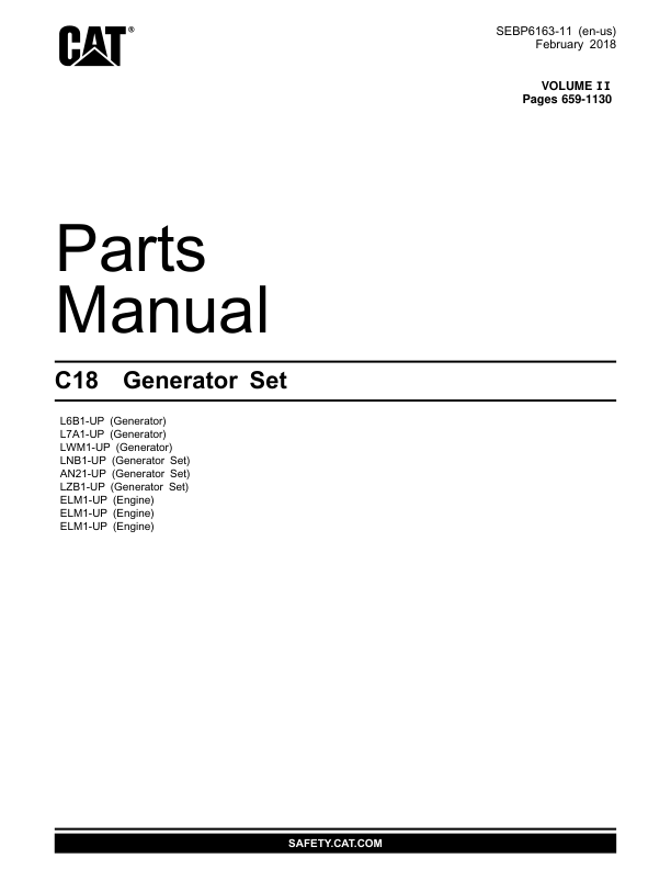 CAT C18 Generator Set Parts Catalog Volume II L6B1 L7A1