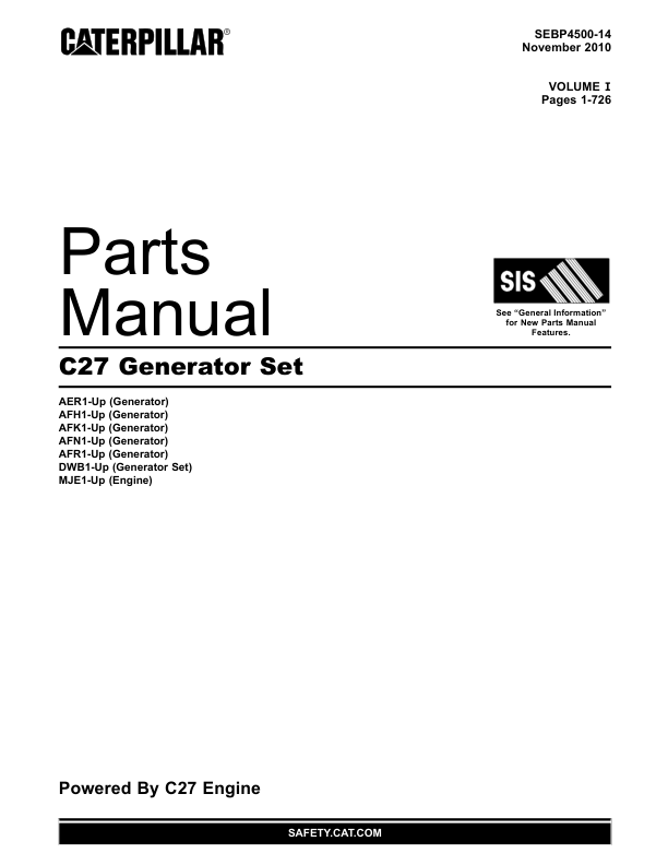 CAT C27 Generator Set Parts Catalog Volume I SEBP4500-14