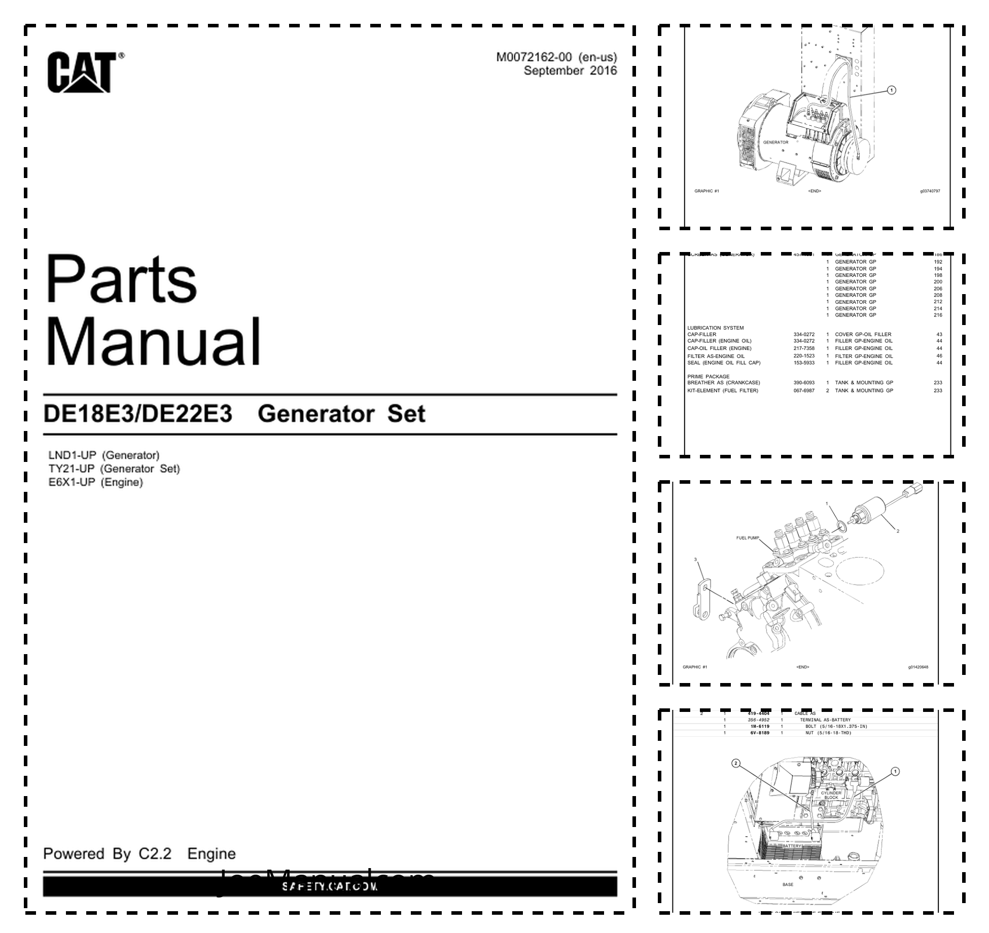CAT DE18E3 DE22E3 Generator Set Parts Catalog LND1-UP TY21-UP