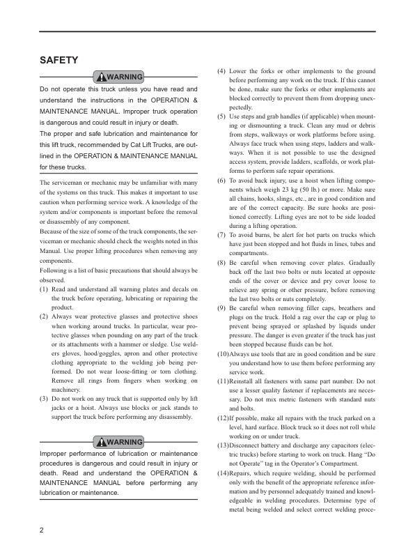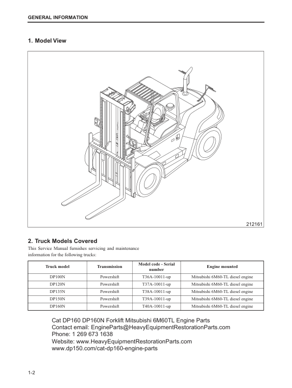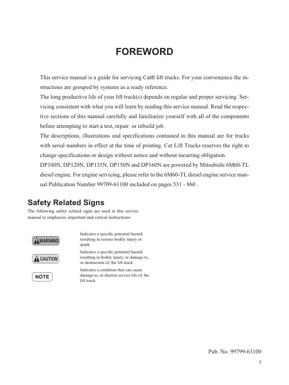 CAT DP100N DP120N DP135N DP150N DP160N Forklift Service Manual