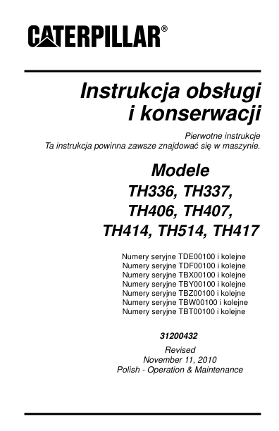 CAT TH336 337 406 407 414 514 417 Thelehandler Operation Manual
