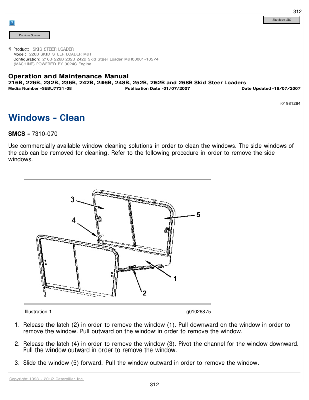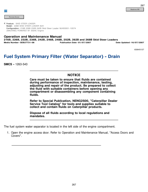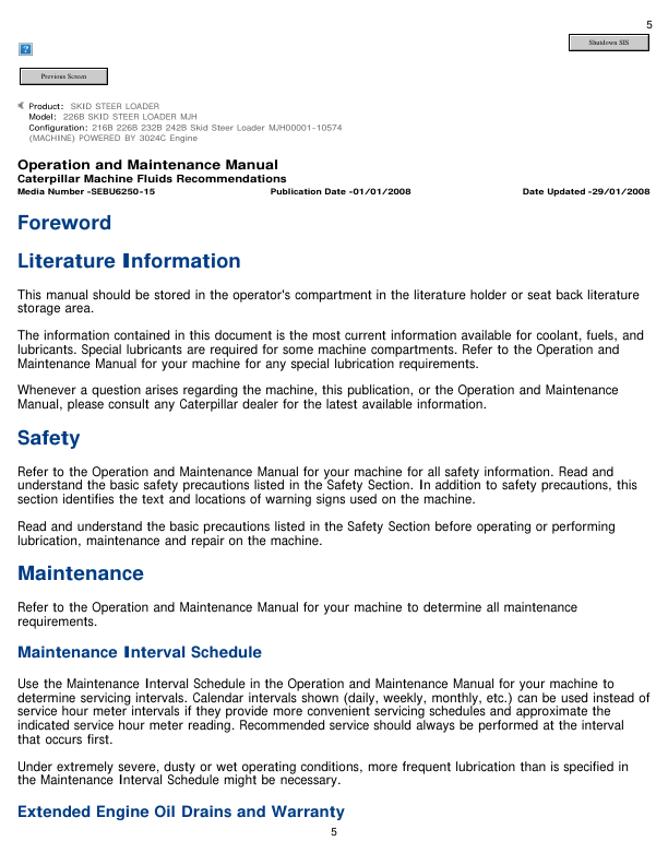 Caterpillar 226B Skid Steer Loader Operation and Maintenance Manual