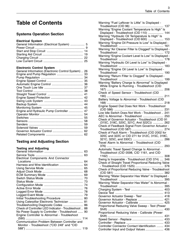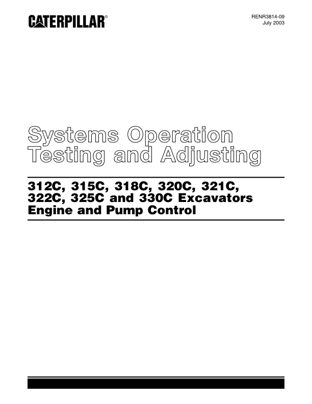 Caterpillar 312C 315C 318C 320C 321C 322C 325C 330C Operation Testing Adjusting