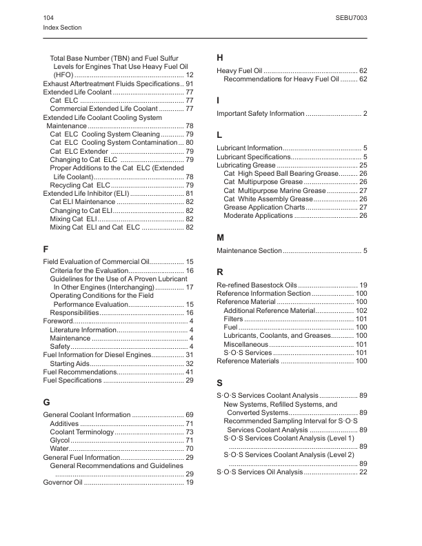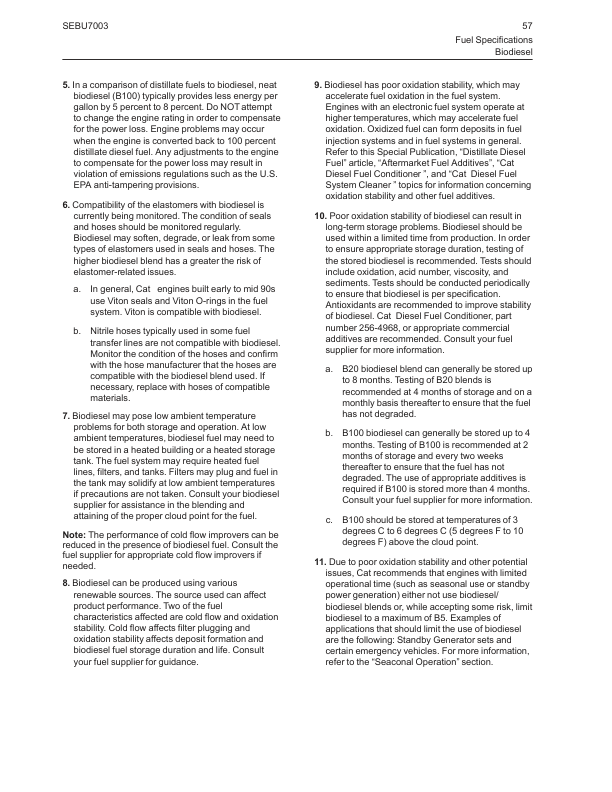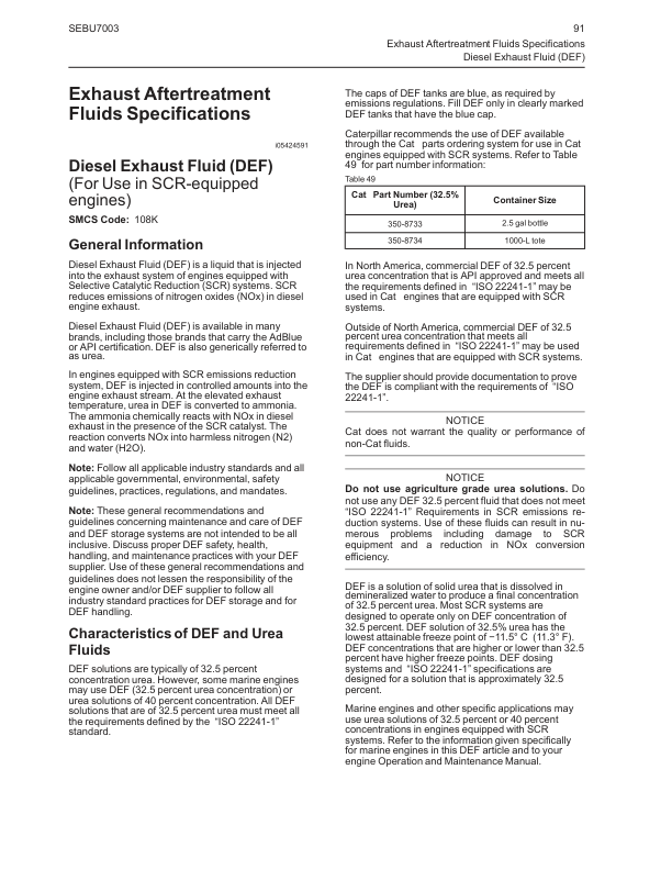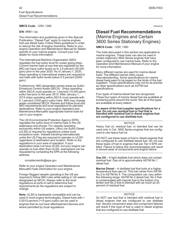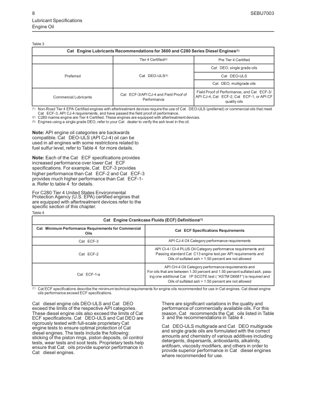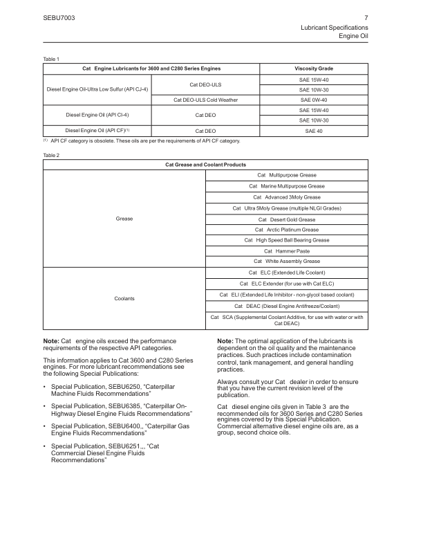 Caterpillar 3600 Series C280 Series Engine Fluids Recommencdations