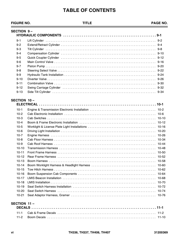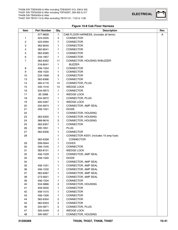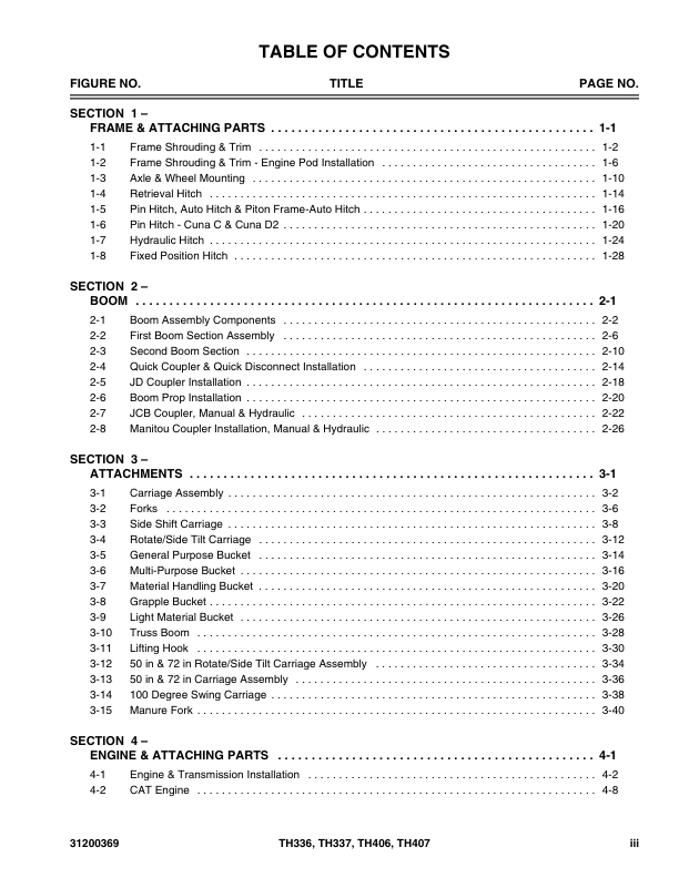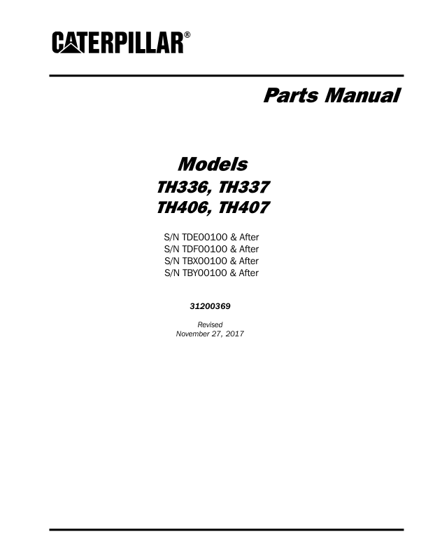 Caterpillar TH336 TH337 TH406 TH407 Telehandler Parts Manual
