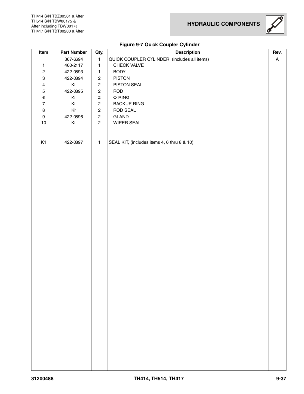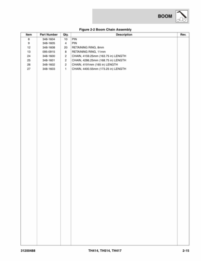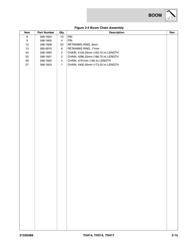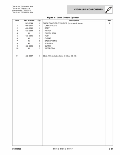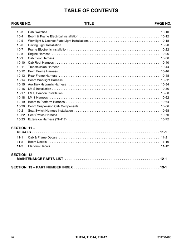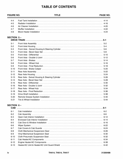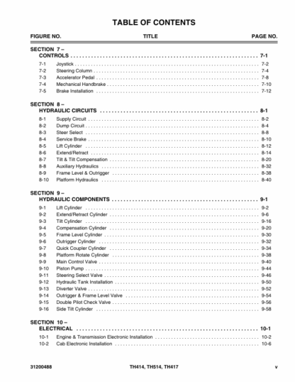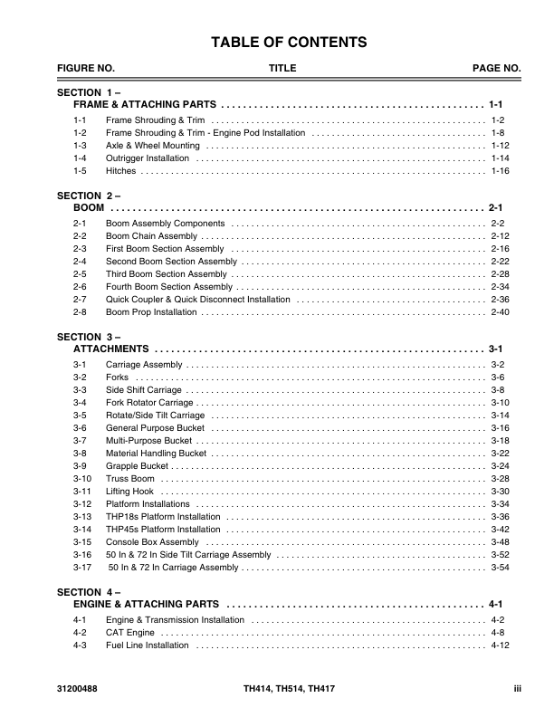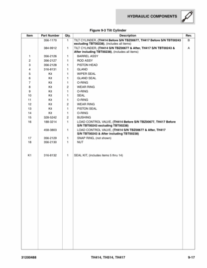Caterpillar TH414 TH514 TH417 Telehandler Parts Manual
