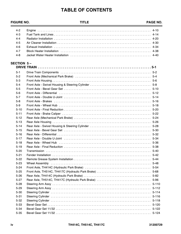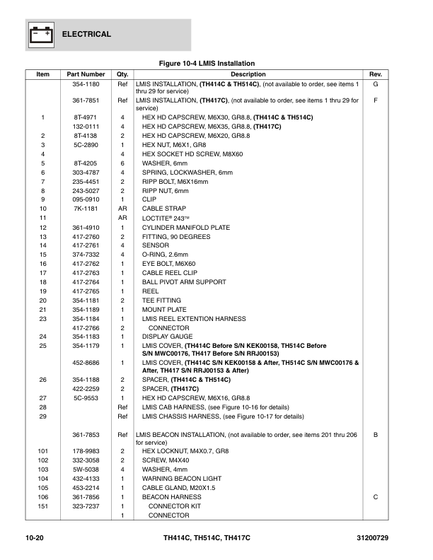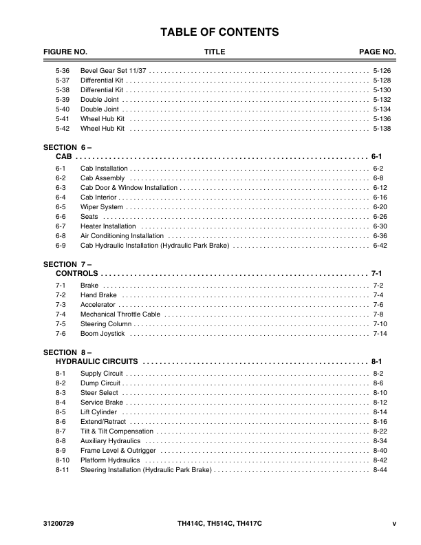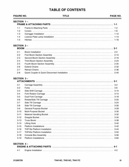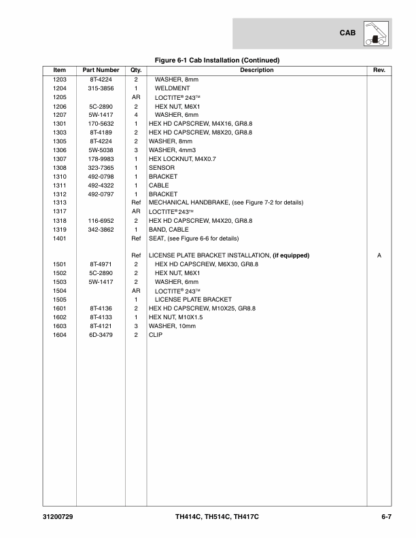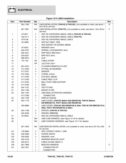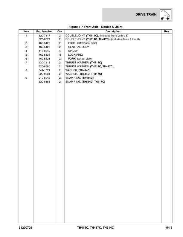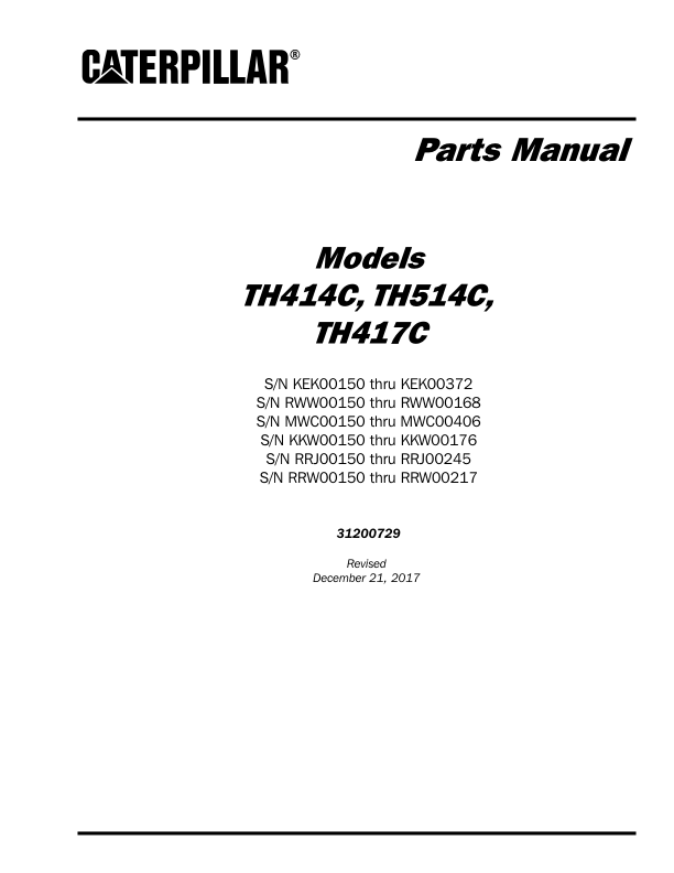 Caterpillar TH414C TH514C TH417C Telehandler Parts Manual