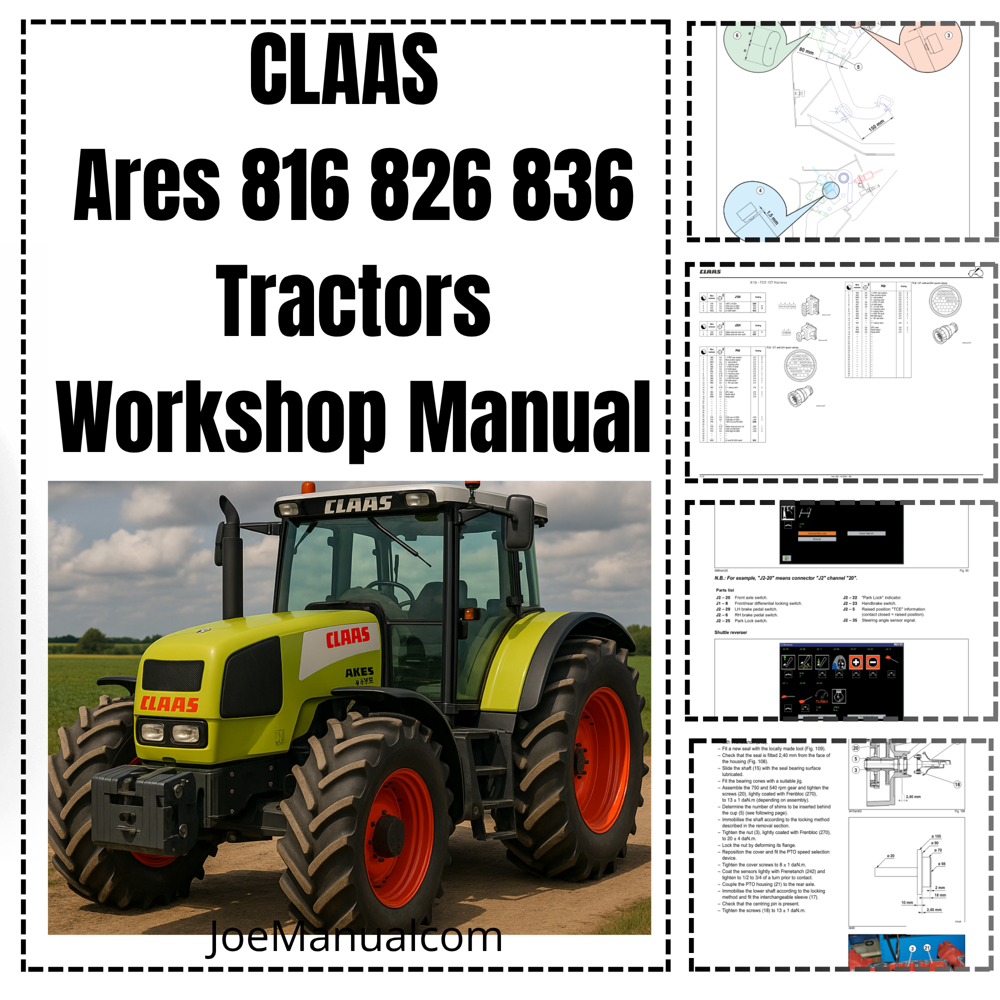 Comprehensive workshop manual for CLAAS Ares 816, 826, and 836 series tractors. Detailed technical information, diagrams, and repair procedures included. Essential guide for maintenance and servicing.