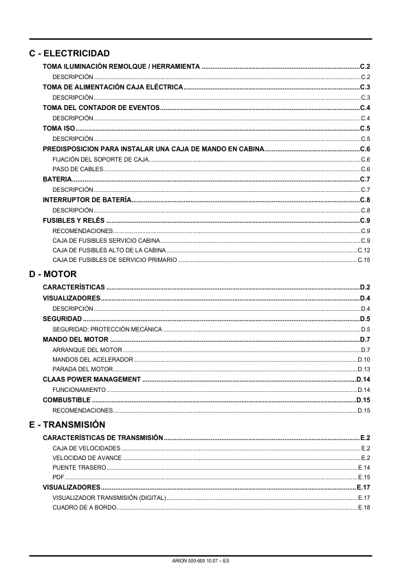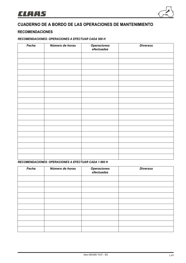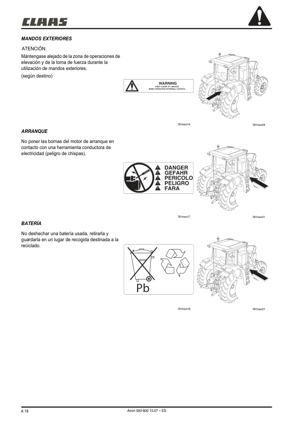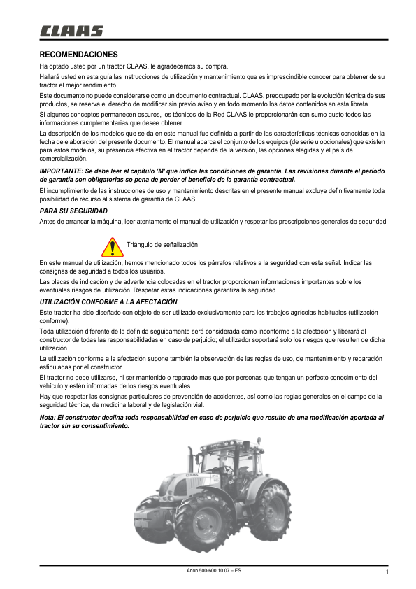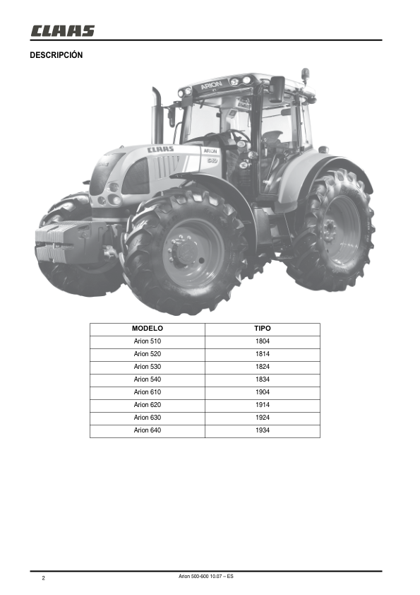 Claas Arion 510 520 530 540 610 620 630 640 Tractors Operators Manual ES