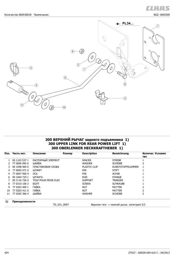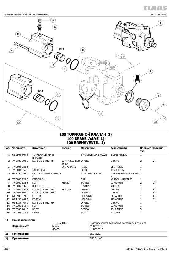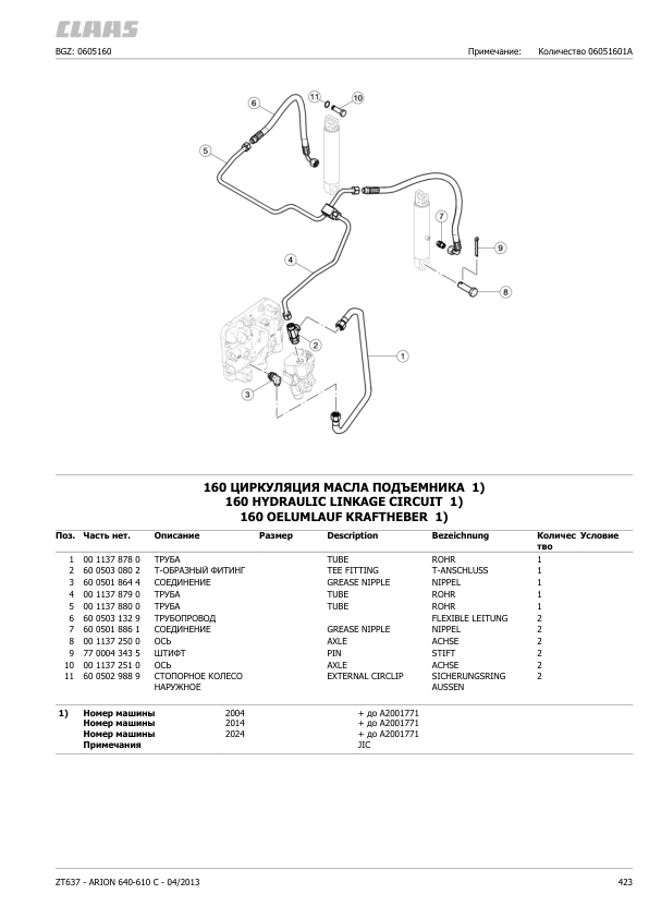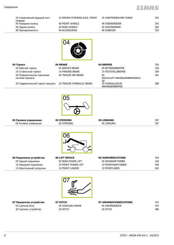 Claas Arion 610 620 630 640 Tractors Parts Catalog
