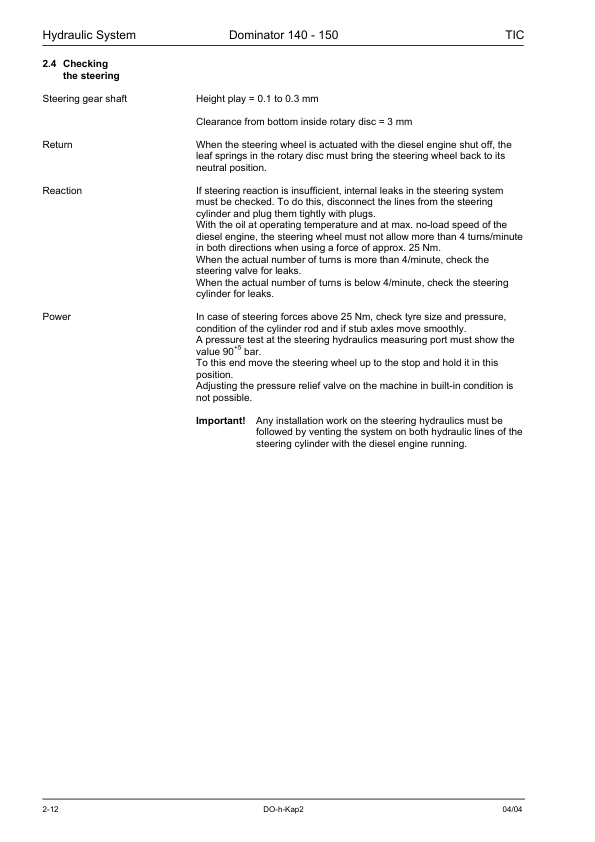 Claas Dominator 140 150 Combine Harvesters Hydraulic System Manual