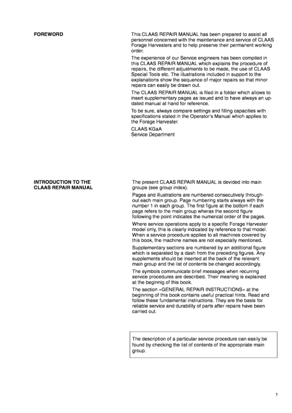 Claas Jaguar 880 820 Forage Harvester Repair Manual