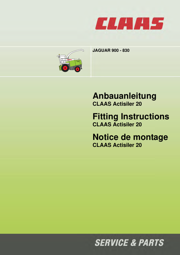 Claas Jaguar 900 830 Forage Harvester Actisiler 20 Fitting Instructions