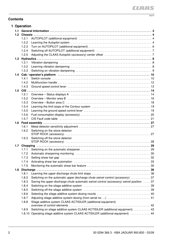Claas Jaguar 900 830 Forage Harvester Concise Operators Manual