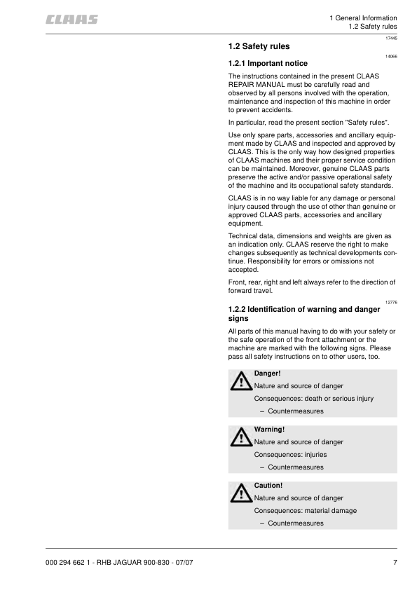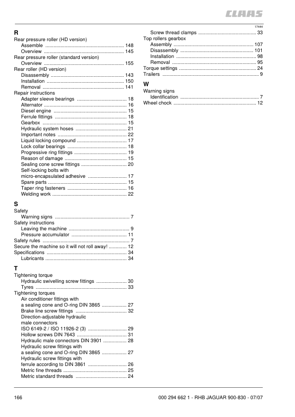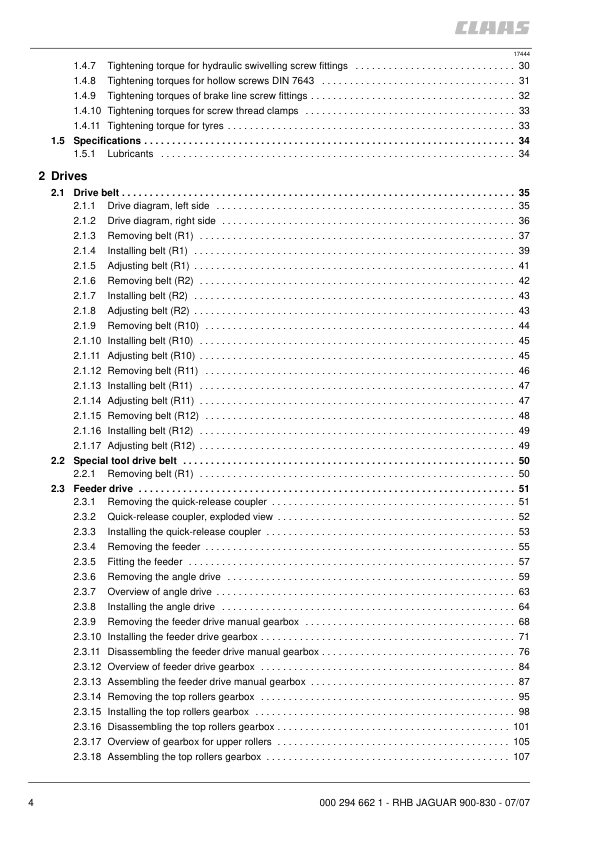 Claas Jaguar 900 830 Forage Harvester Repair Manual