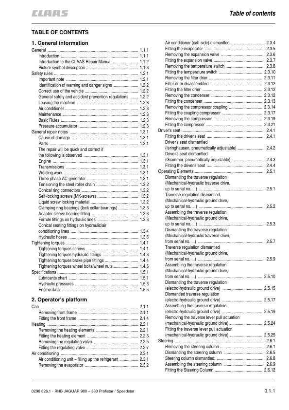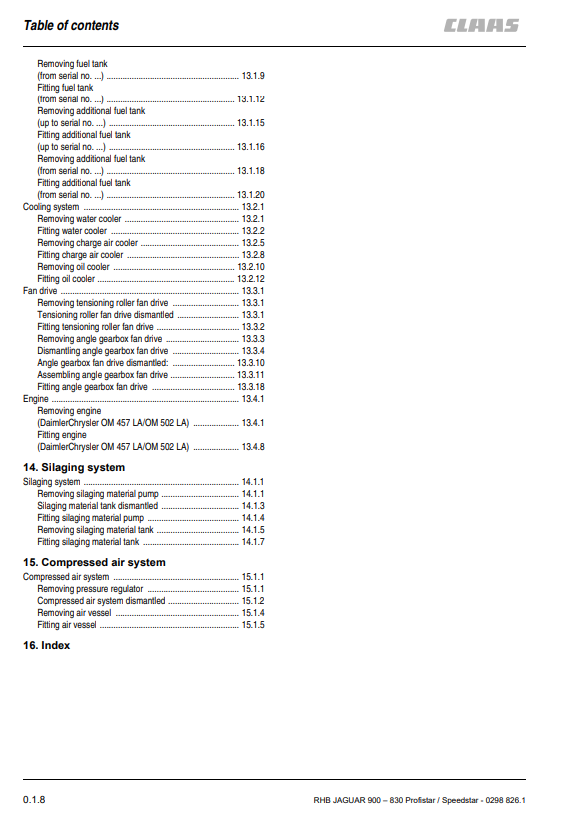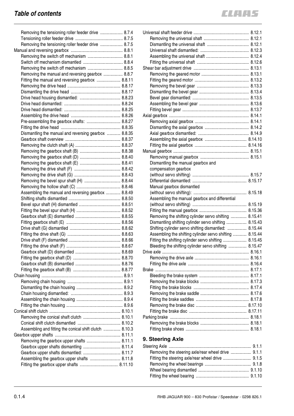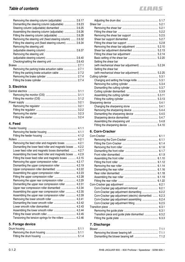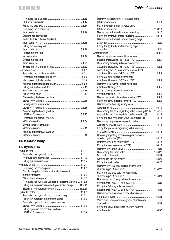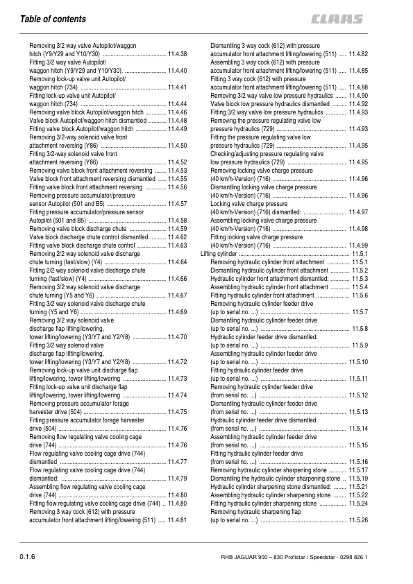 Claas Jaguar 900 830 Profistar Speedstar Forage Harvester Repair Manual