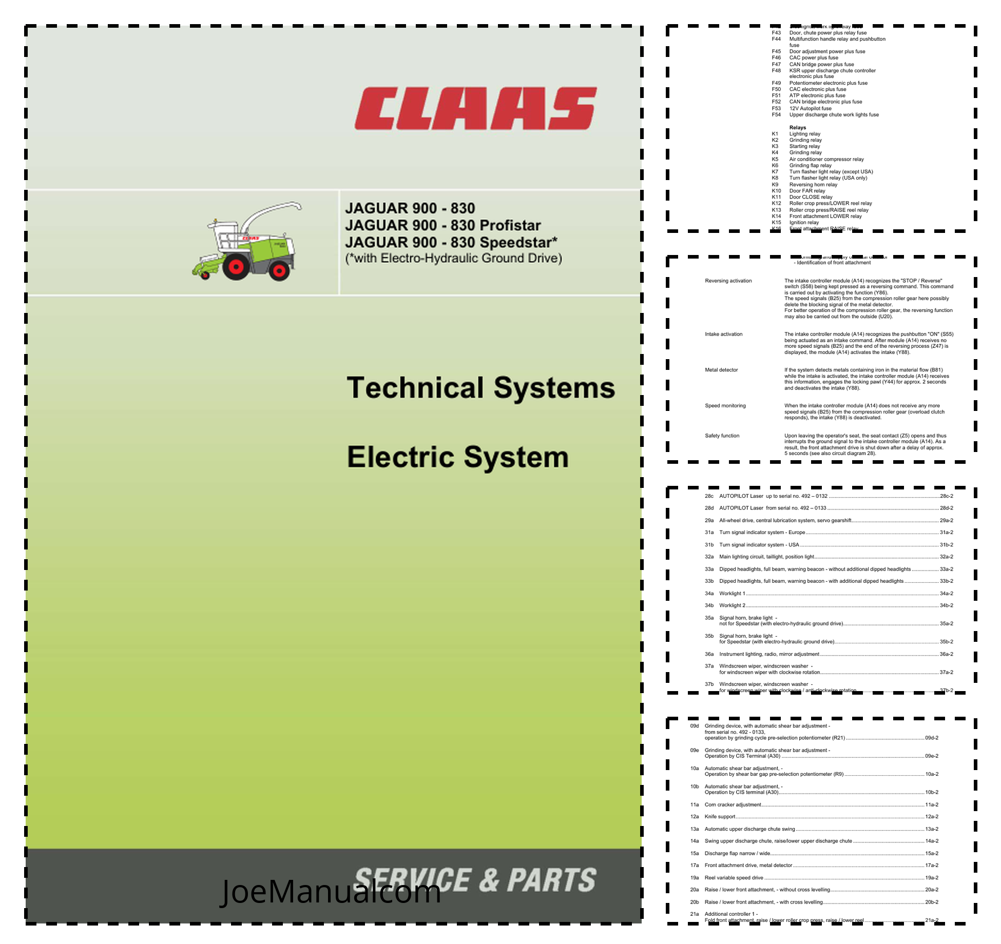 Claas Jaguar 900 830 Profistar Speedstar Technical Systems Electric System Service Manual